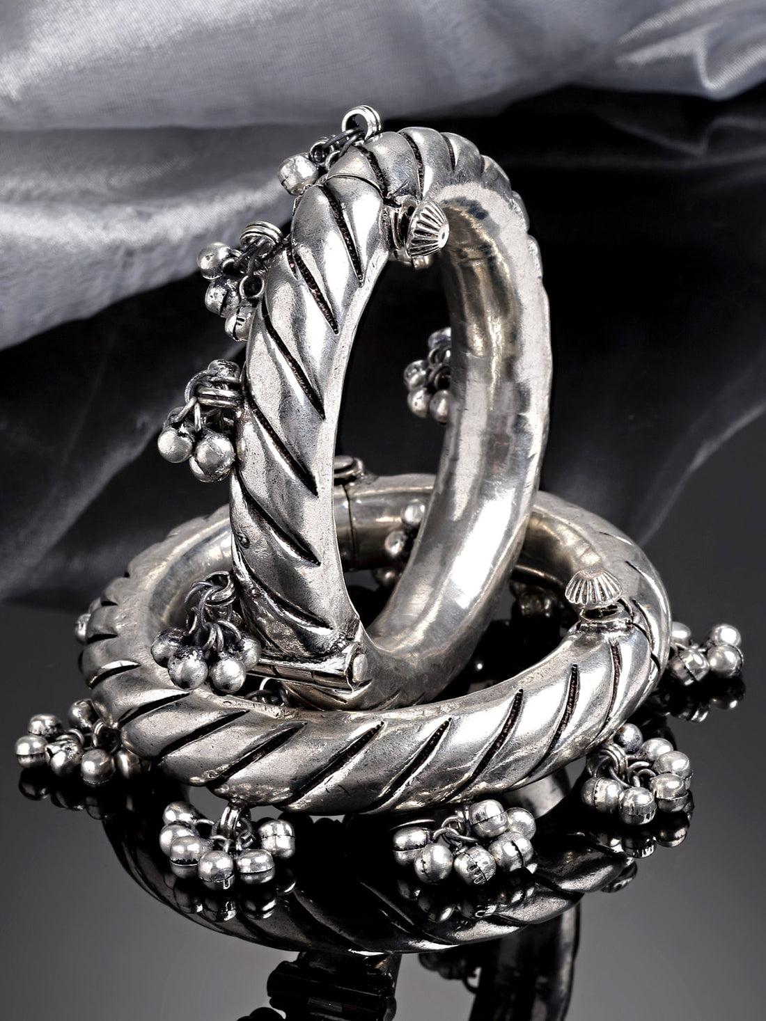 Karatcart Oxidised Silver Antique Openable Bangle for Women