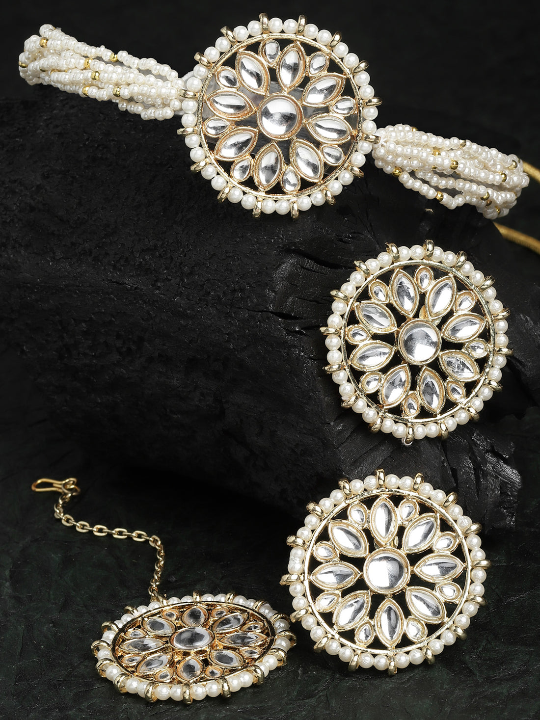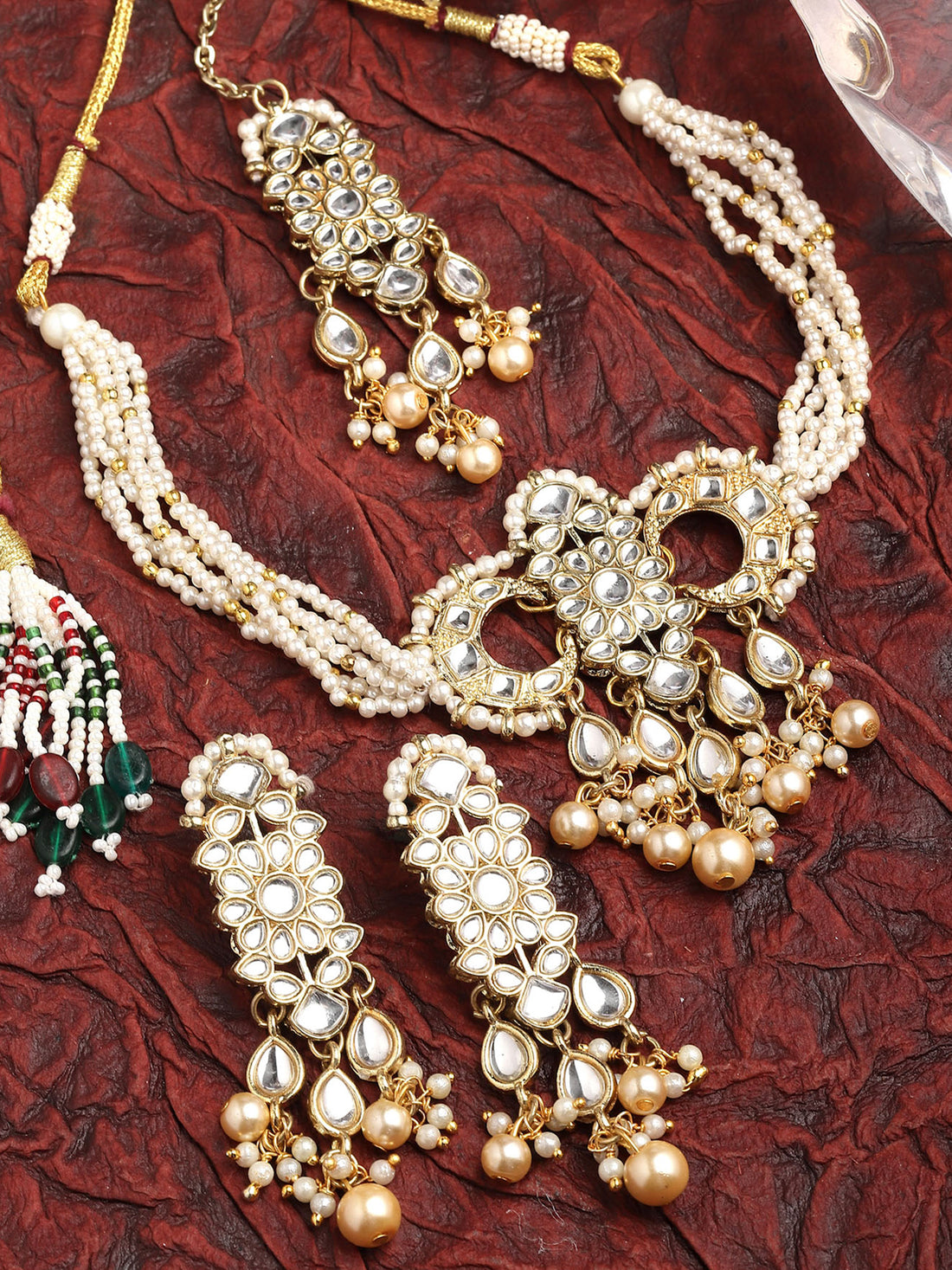 Karatcart Gold Plated Floral Kundan White Pearl Choker Necklace Set
