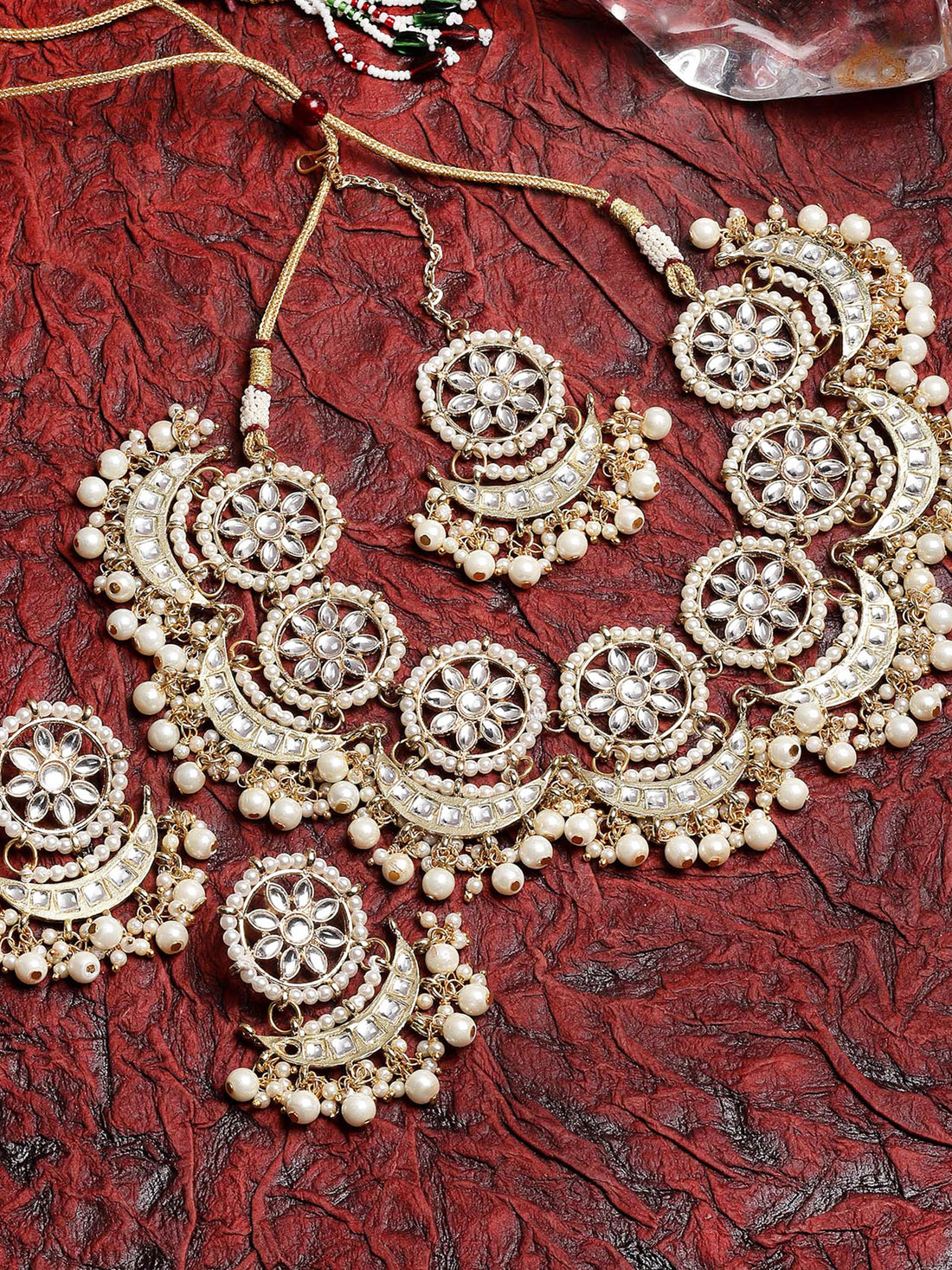 Karatcart Gold Plated white Plearl Chand Shape Kundan Necklace Set