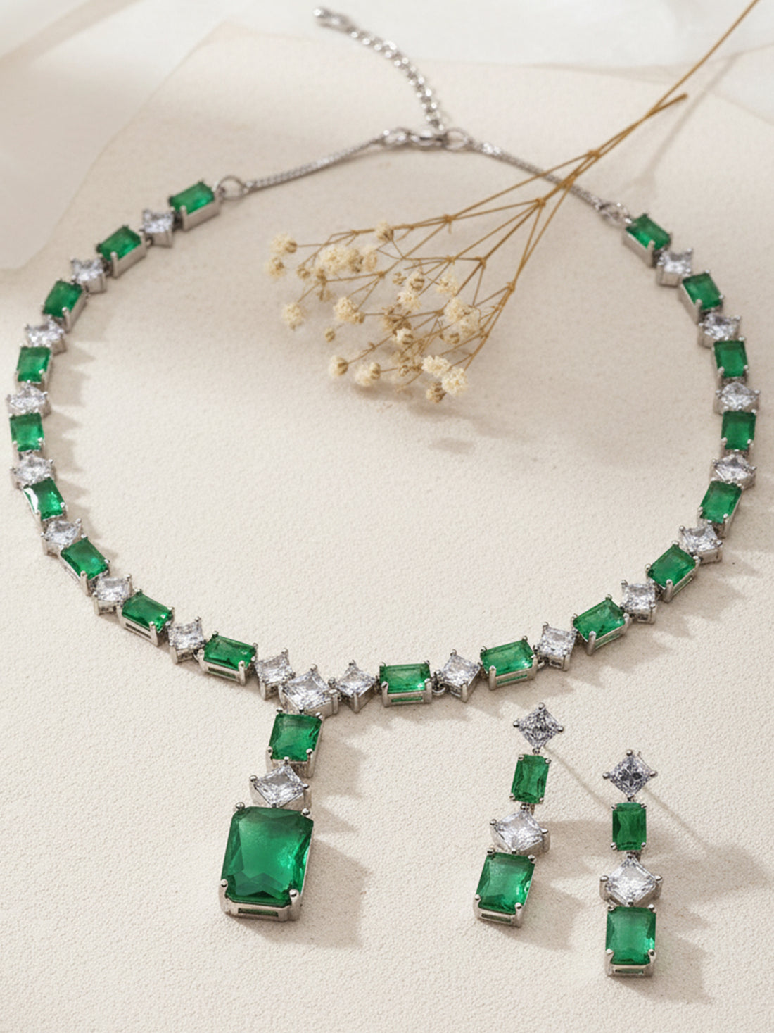 Karatcart Silver Tone Square Green Cubic Zirconia Necklace Set for Women