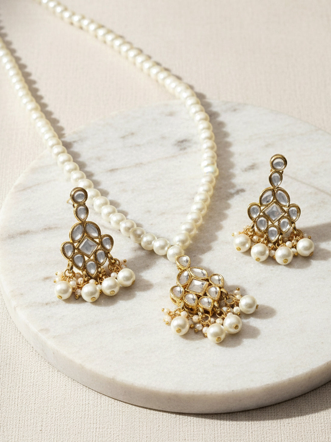 Karatcart Gold Plated Pearl Beads Studded Kundan Necklace Set for Women