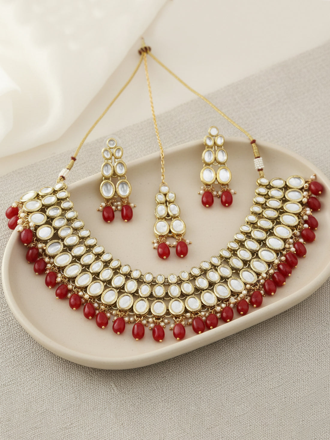 Gold-Tone Traditional Red Stone Studded Kundan Necklace Set