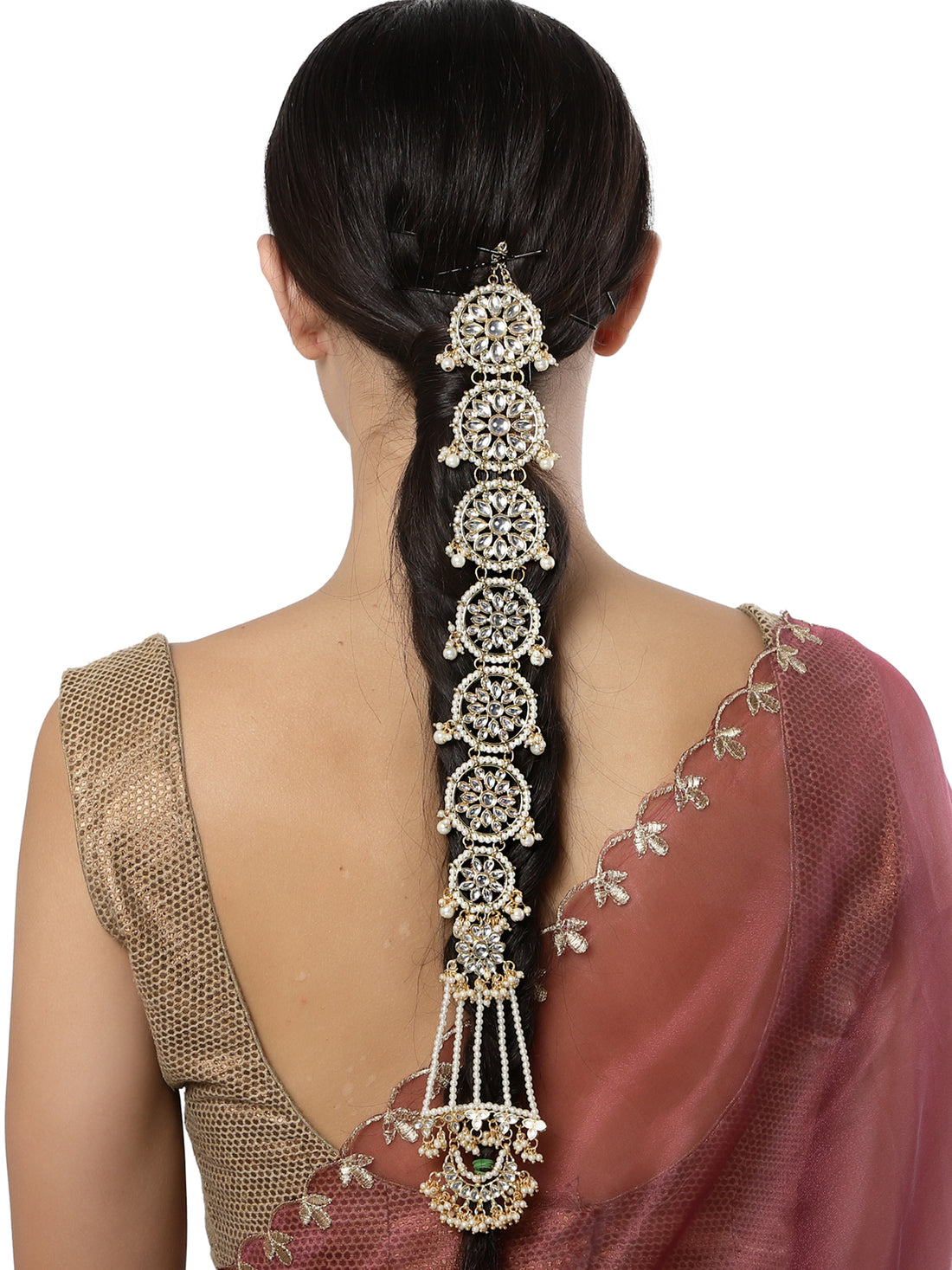 Karatcart Gold Plated Floral White Kundan Wedding Hair Braid Choti