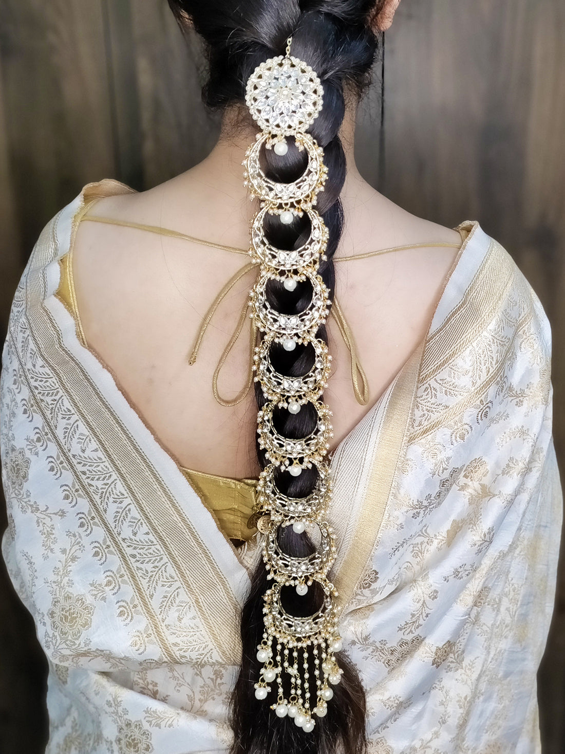 Karatcart Moon Shape Gold Plated Kundan Wedding Hair Braid Choti