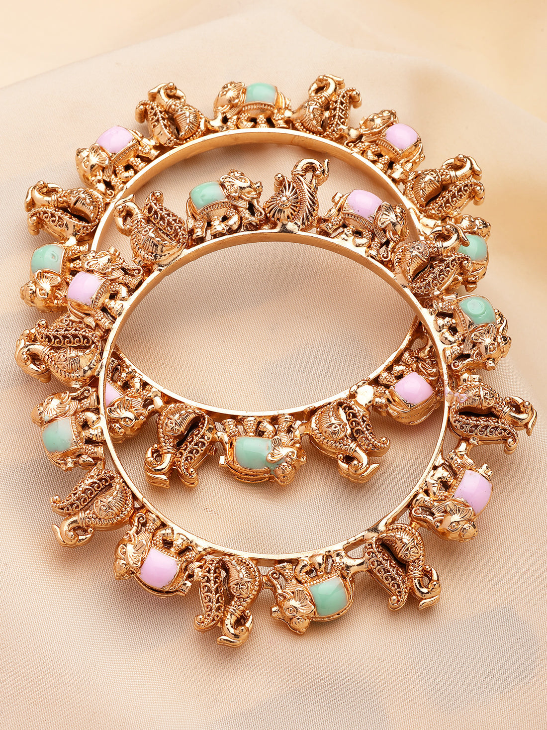 KARATCART Gold-Plated Elephant Design Pink and Lime Green Meenakari Rajwadi Bangles for Women