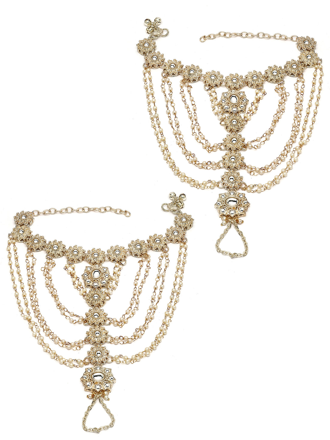 Karatcart Gold-Plated Kundan & Pearls Studded Handcrafted Anklets. Made by joining small Kundan's together it...