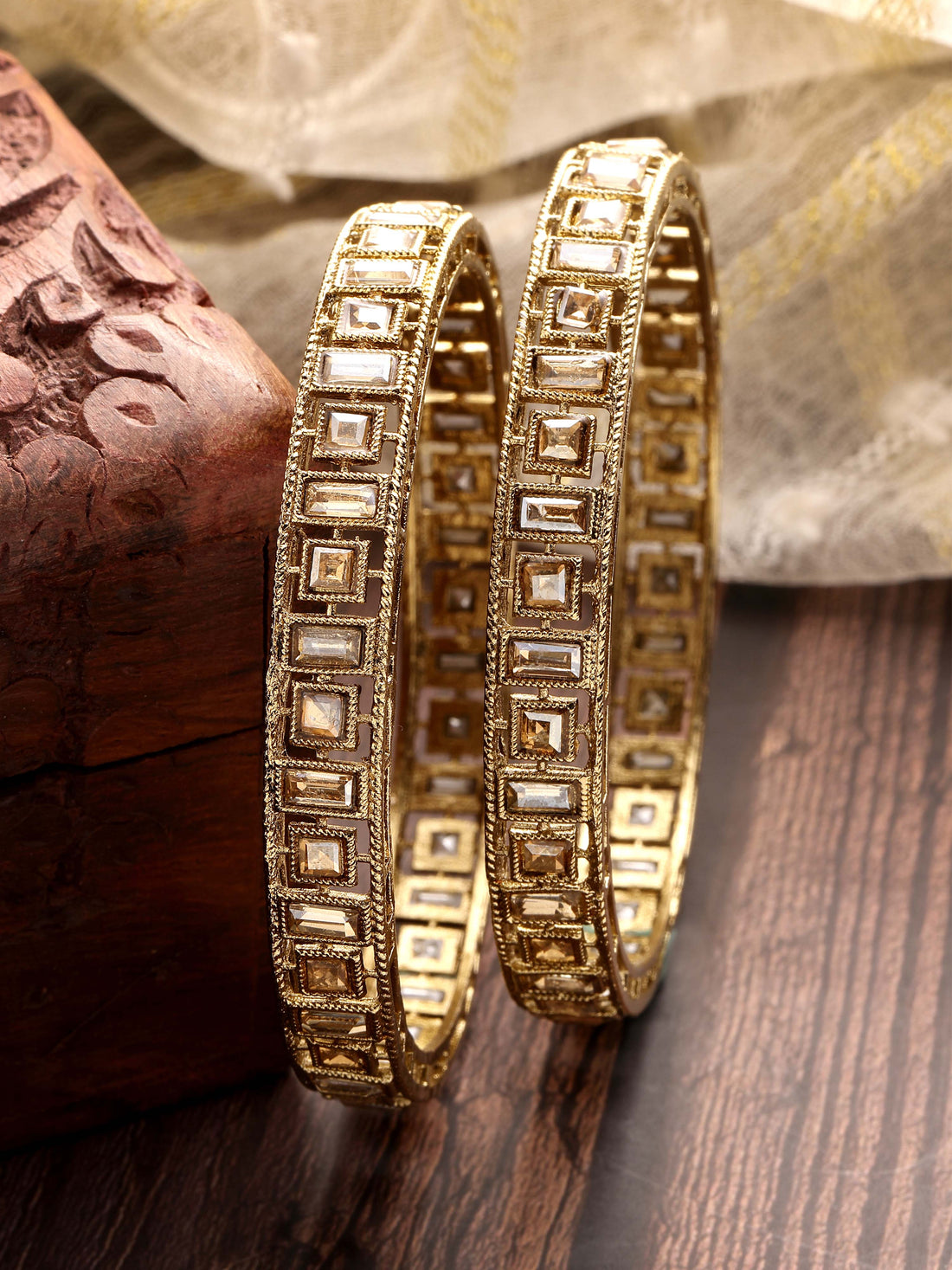 Karatcart Antique Gold Plated Set of 2 Mirror Studded Bangles for Women