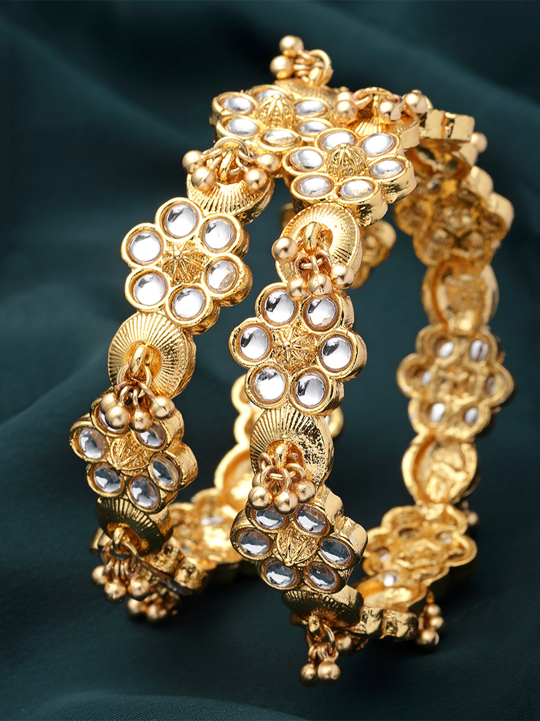 Karatcart Set of 2 Floral Design American Diamond Studded Gold Plated Bangles for Women