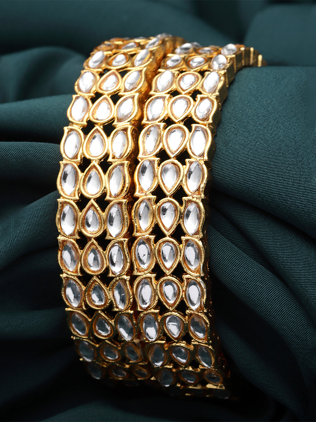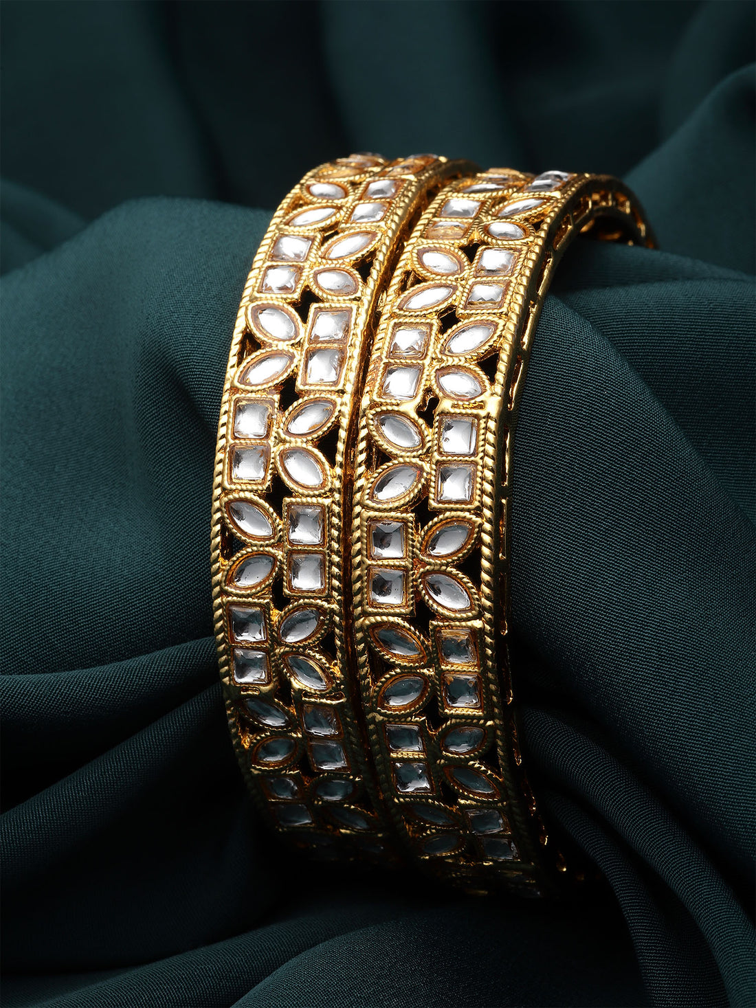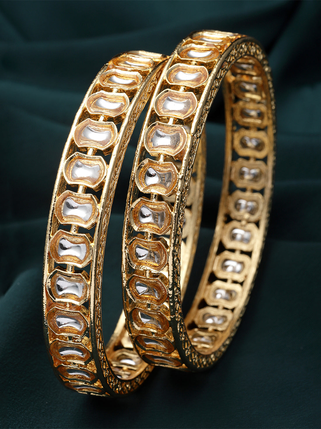 Karatcart Set of 2 Gold Plated Oval Design Kundan Bangles for Women