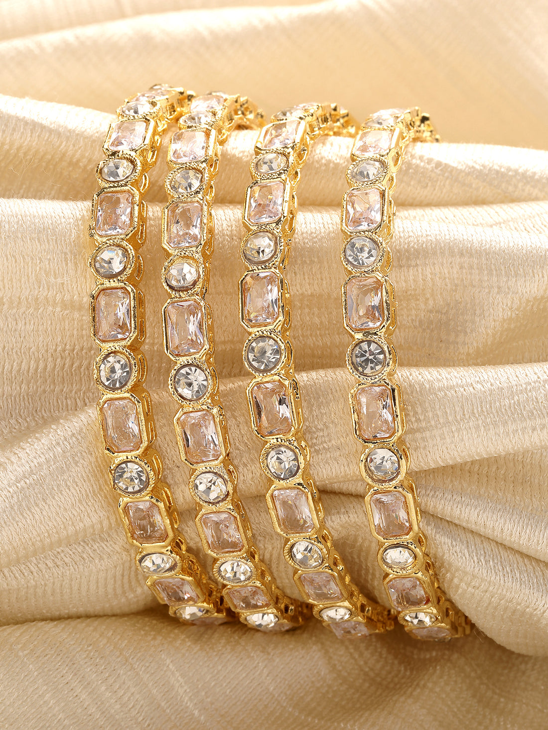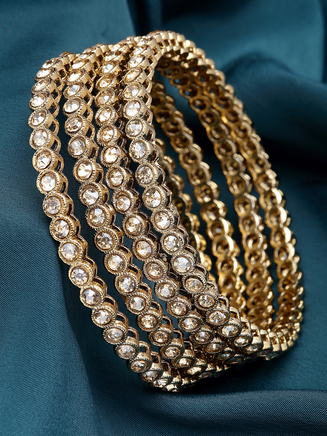 Karatcart Set of 4 American Diamond Studded Gold Plated Bangles for Women