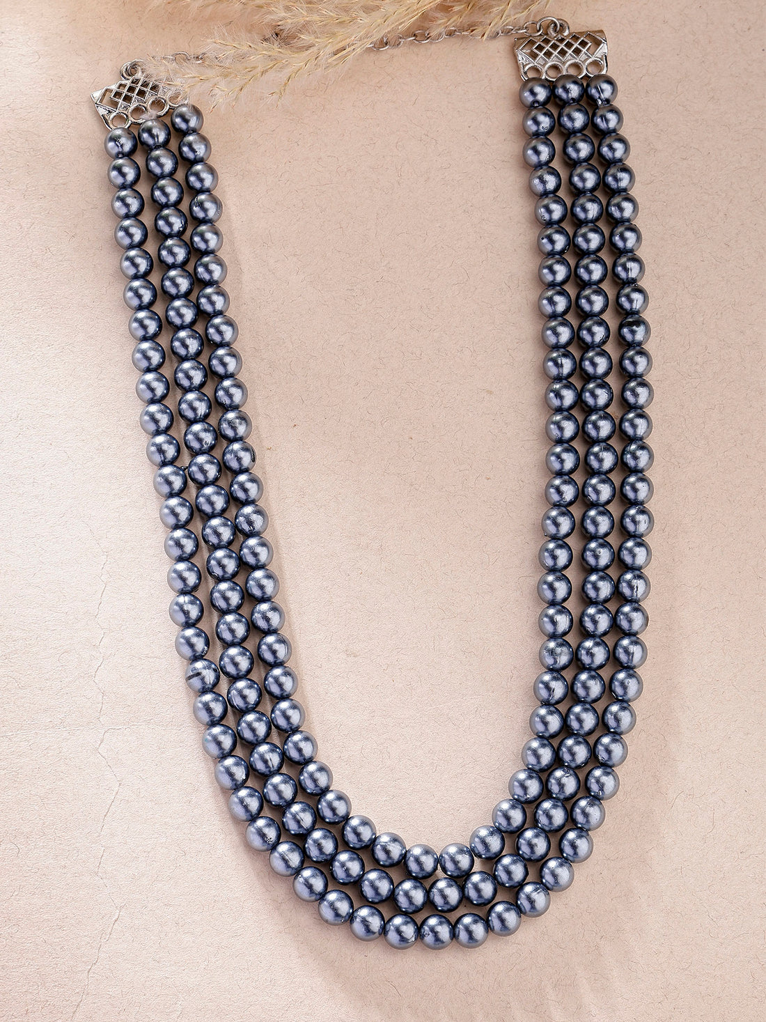 Karatcart Matellic Blue Pearl Beaded Necklace for Women