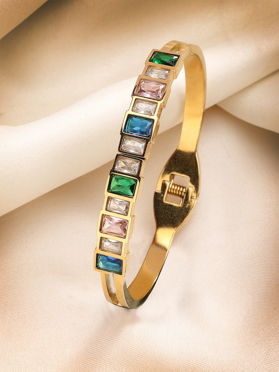 Bohey by KARATCART Gold-Plated Multicolor Cubic Zirconia Studded Bangle-Style Bracelet for Women