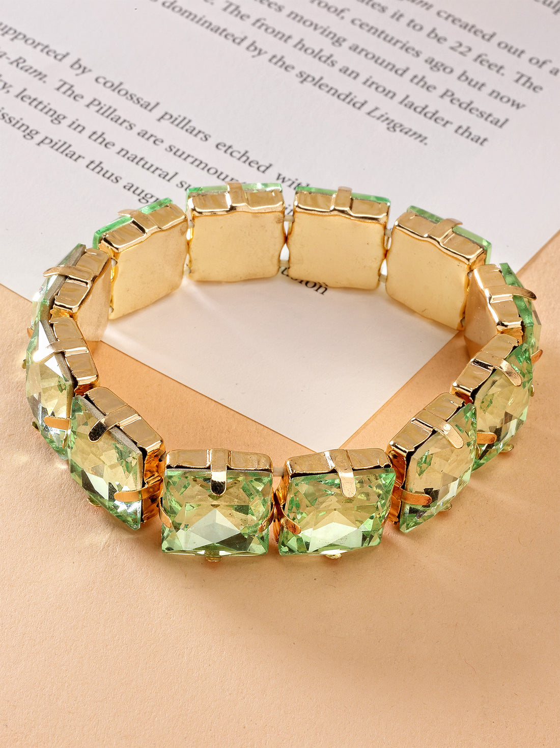 Bohey by KARATCART Gold-Plated Lime Green Cubic Zirconia Studded Wraparound Bracelet for Women