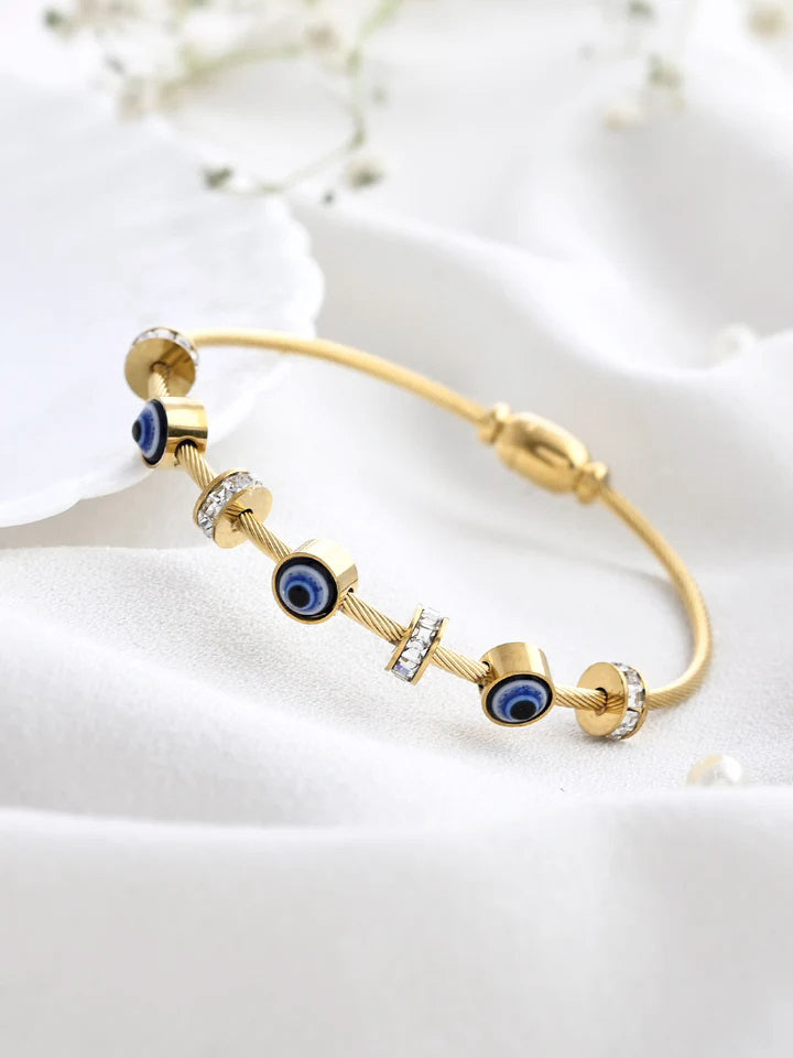 Bohey by KARATCART Gold Plated CZ Evil Eye Bracelet for Women