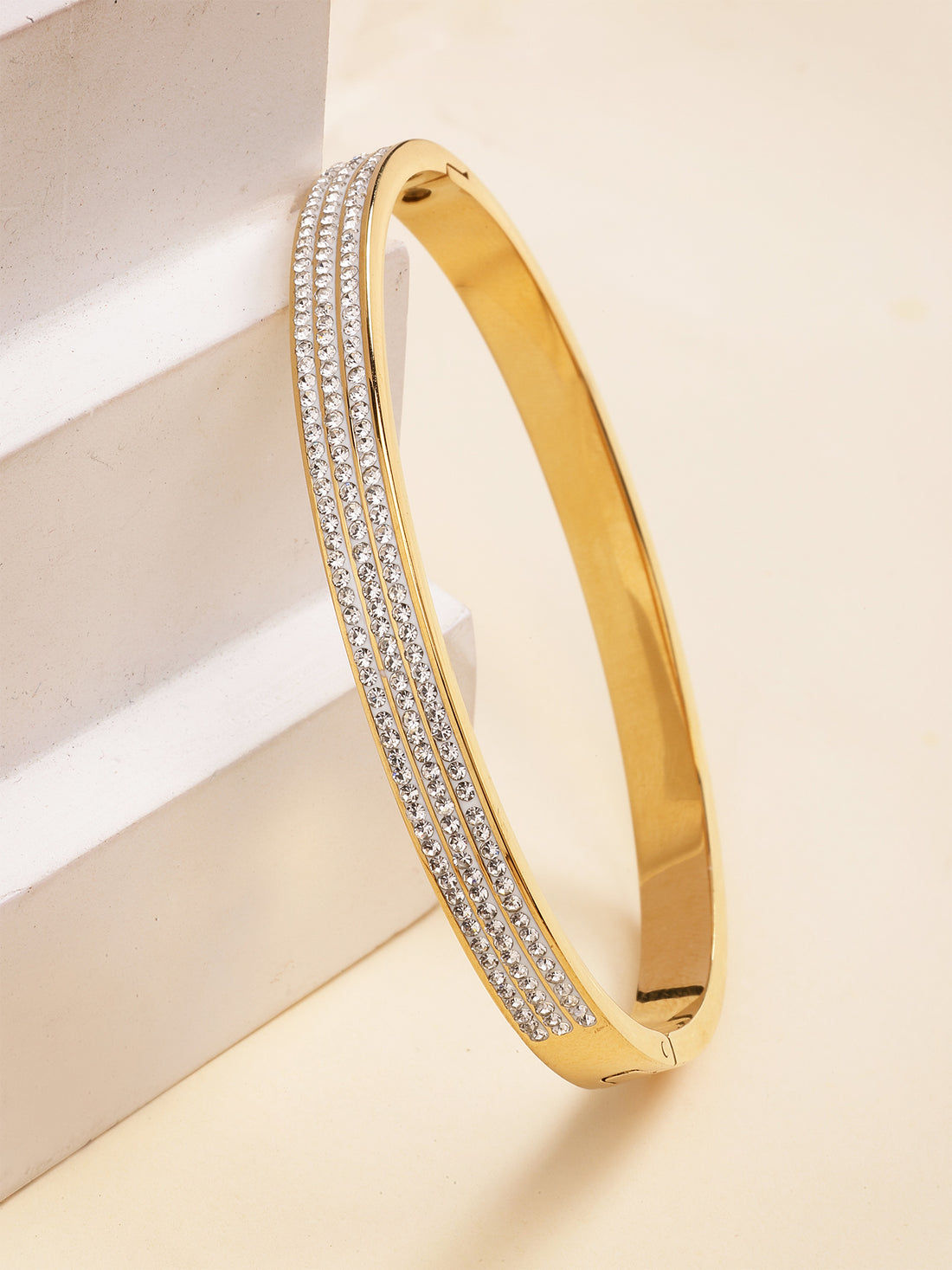Bohey by KARATCART Gold-Plated White Cubic Zirconia Studded Bangle-Style Bracelet for Women