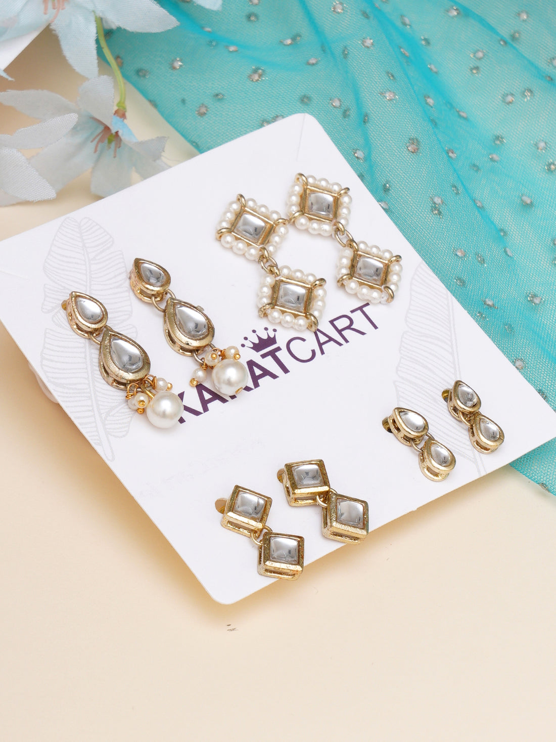Karatcart Set of 3 Handcrafted Kundan Earrings Combo for Women