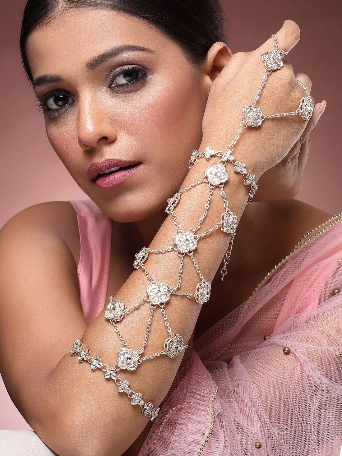 Karatcart Gold Plated Kundan Long Hathphool for Women. It is made with high-quality Kundan Stones...