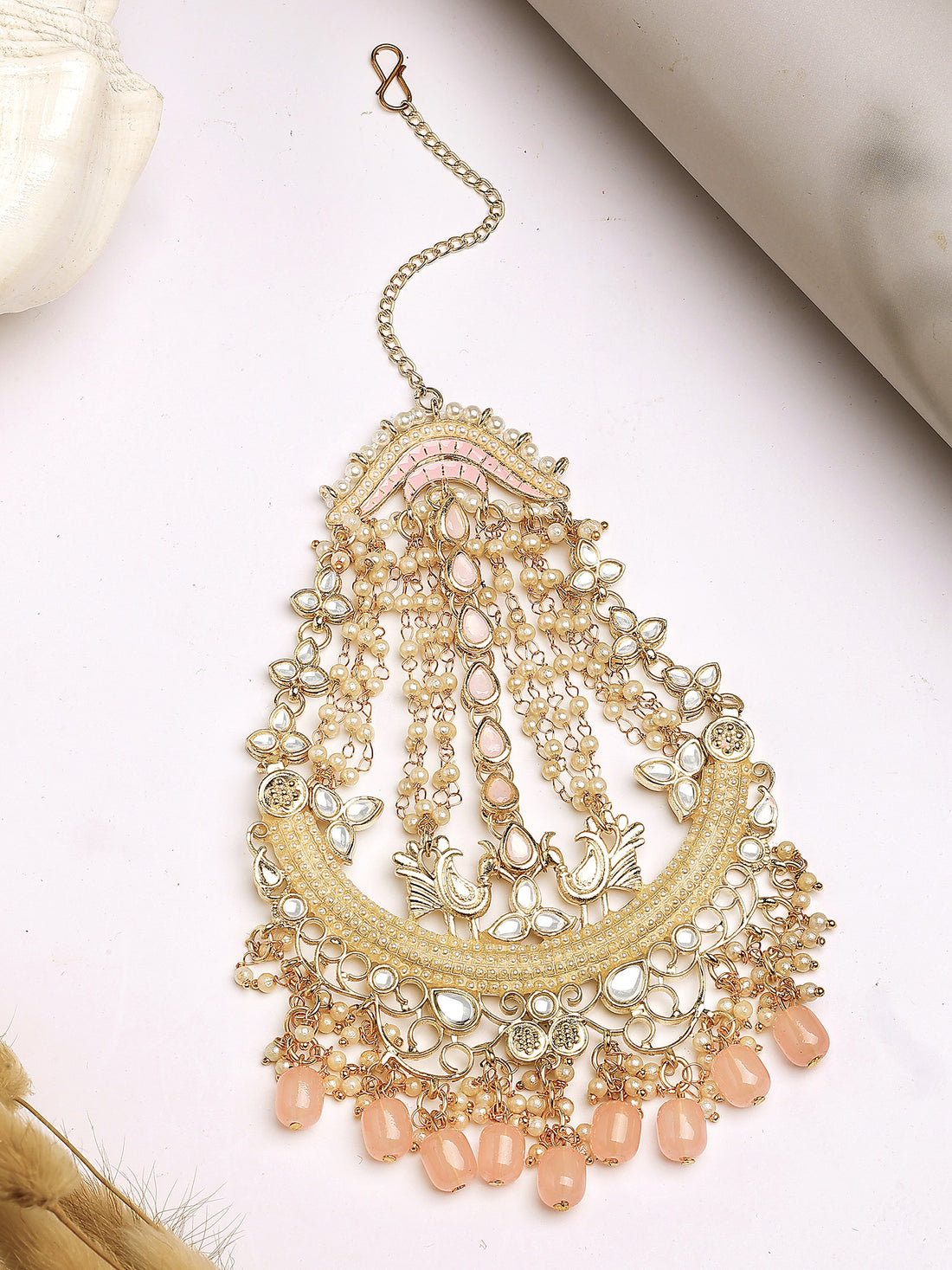Karatcart Gold Plaated Pink Beads and Pearl Studded Kundan Passa for Women