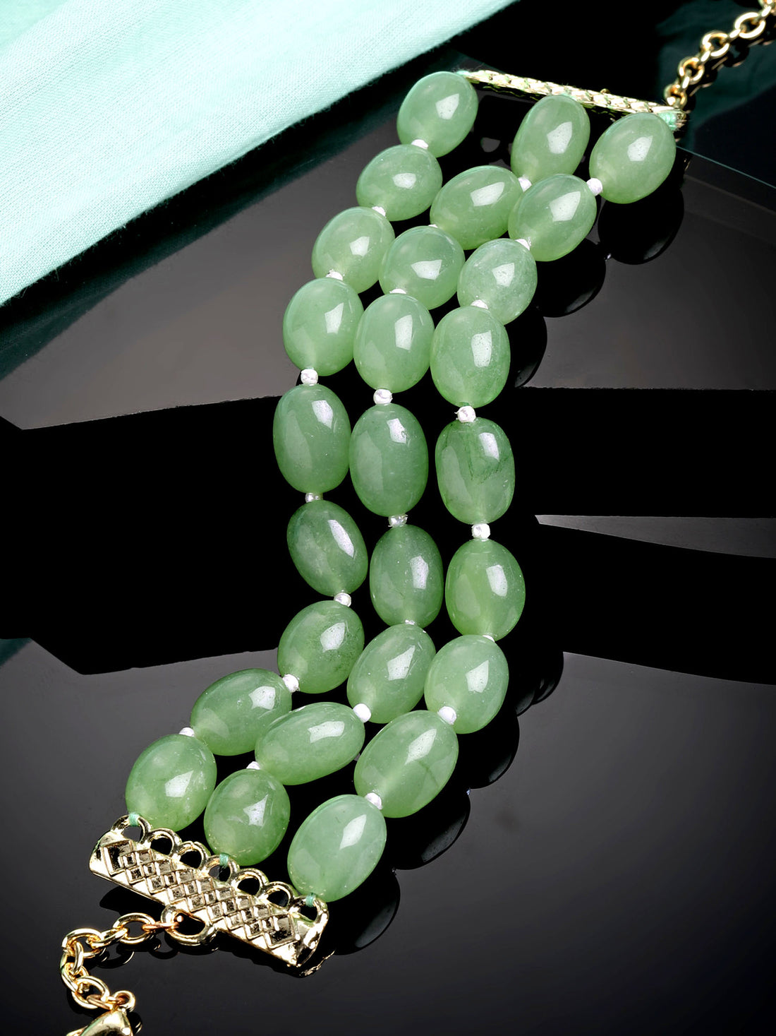 Karatcart Green Tumble Stone Beaded Bracelet for Women