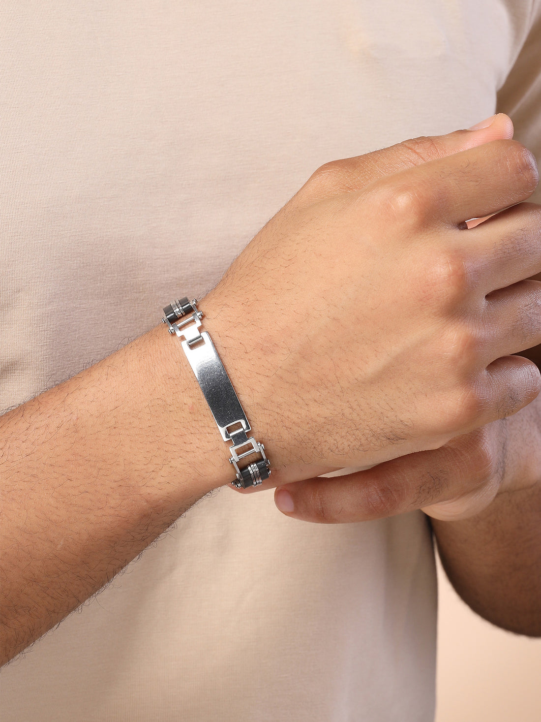 Bohey by KARATCART Black and Silver Link Bracelet for Men