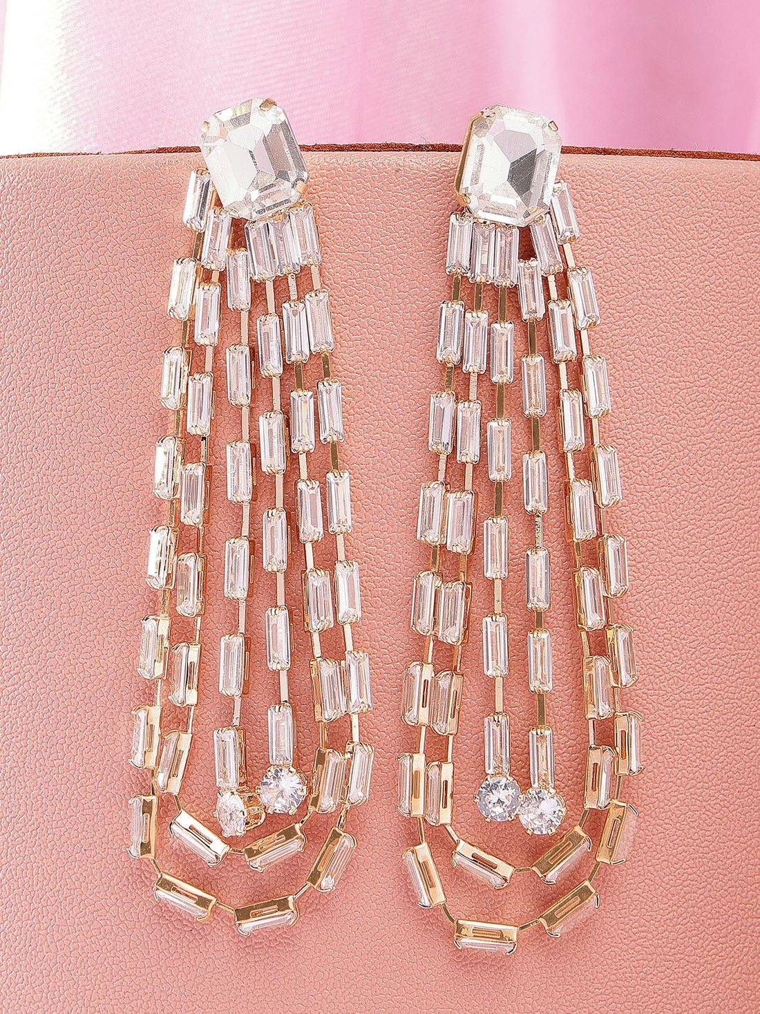Bohey by KARATCART Gold Plated Cubic Zirconia Long Drop Earrings