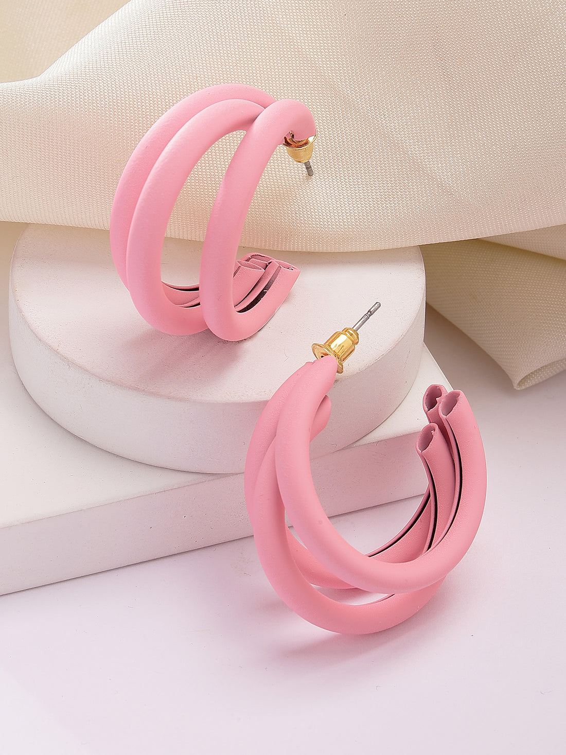 Bohey by KARATCART Matte Finish Pink Half Hoop Earrings