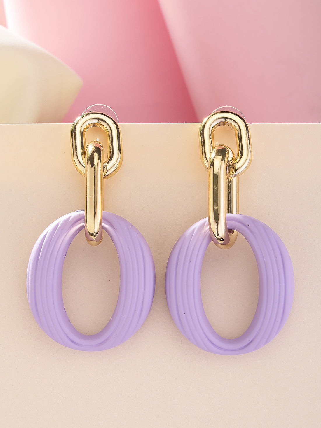 Bohey by KARATCART Matte Finish Gold and Lilac Linked Dangler Earrings for Women