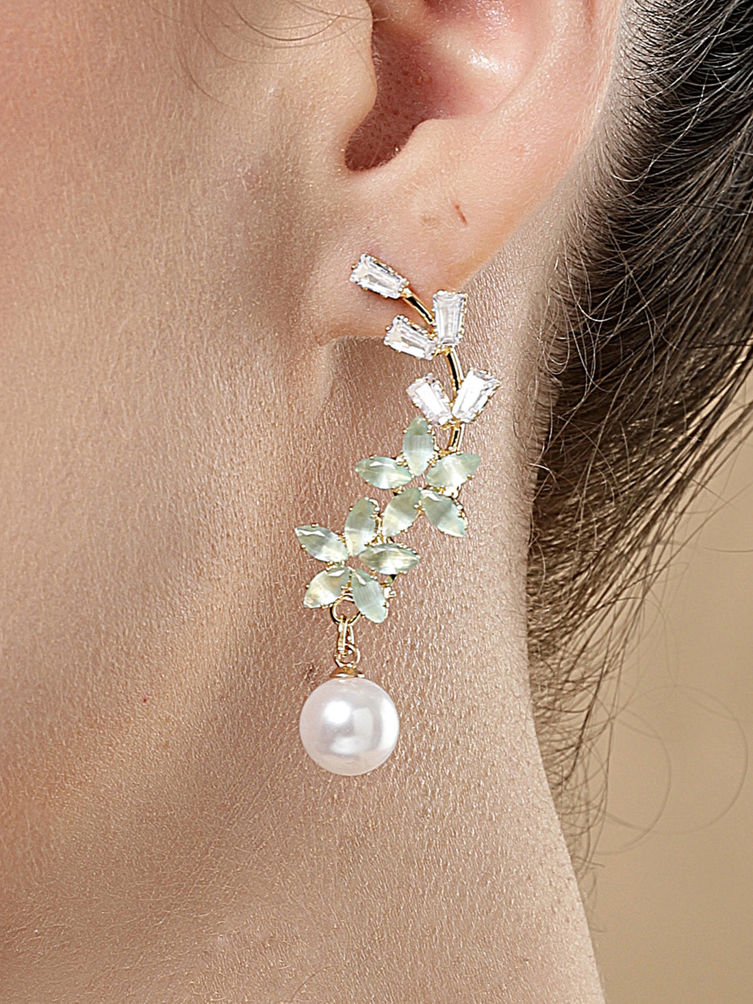 Bohey by KARATCART Gold Plated Sea Green Cubic Zirconia Drop Earrings