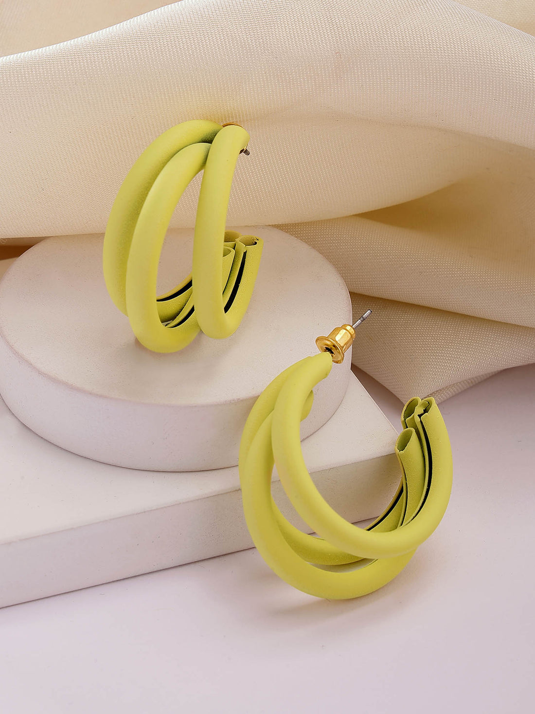 Bohey by KARATCART Matte Finish Yellow Half Hoop Earrings