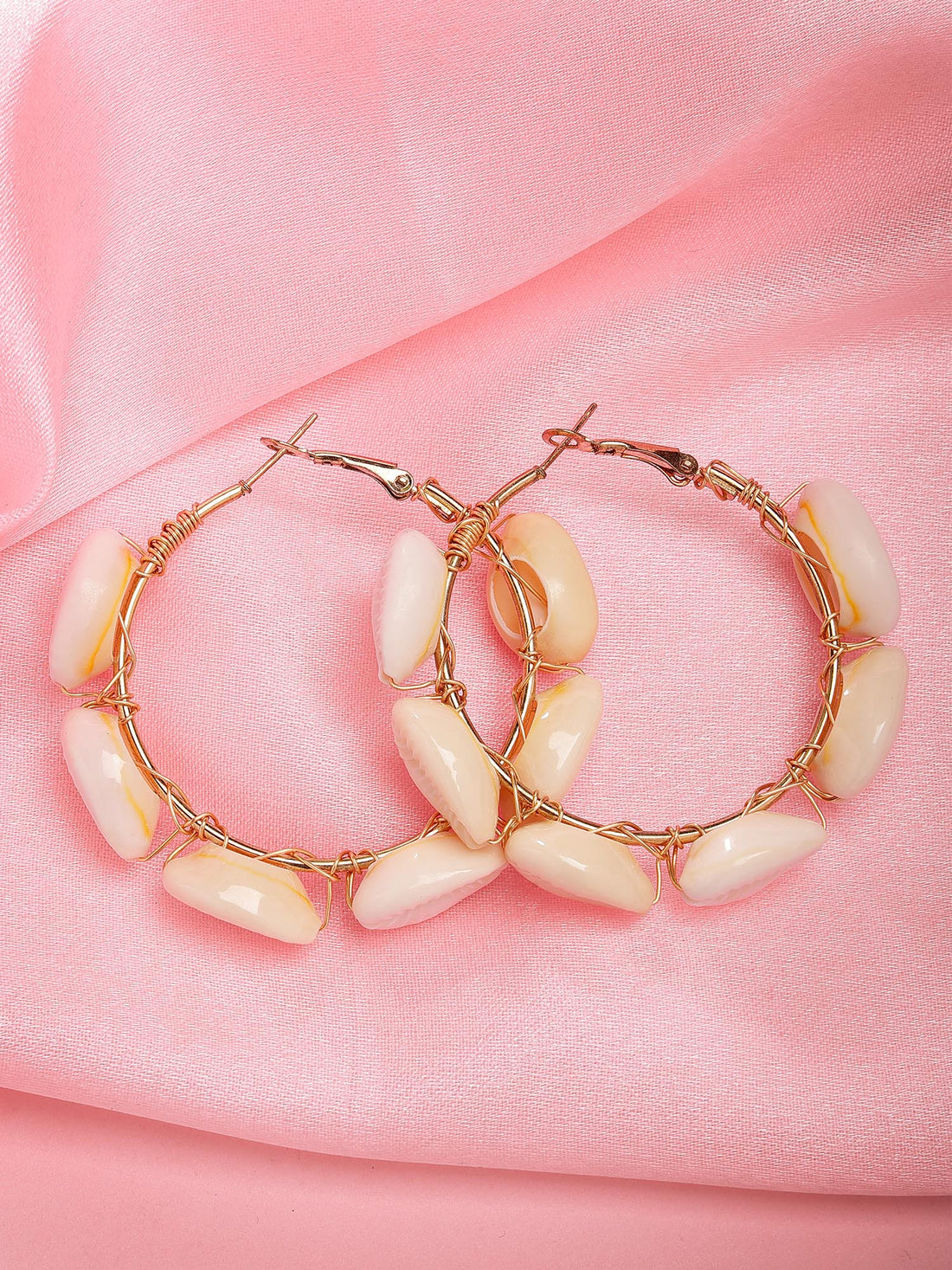 Bohey by KARATCART Gold-Plated Handcrafted Shell Detail Hoop Earrings