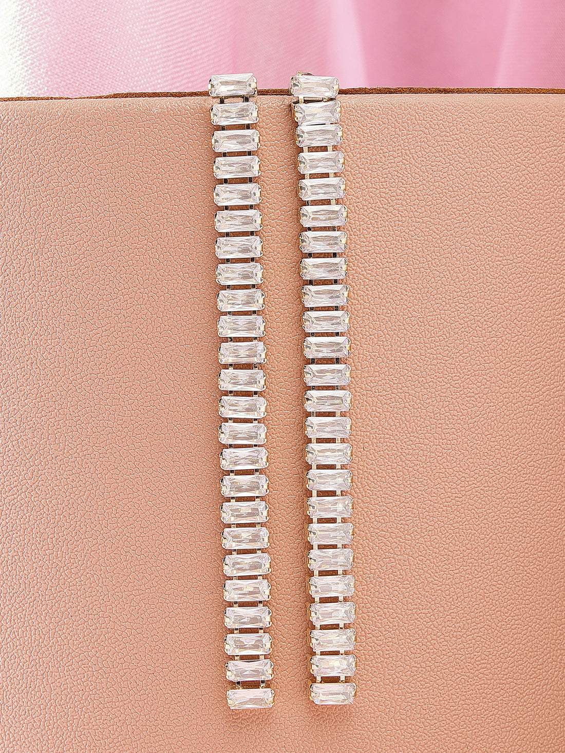 Bohey by KARATCART Gold Plated Baguette AD Stone Studded Dangler Earrings