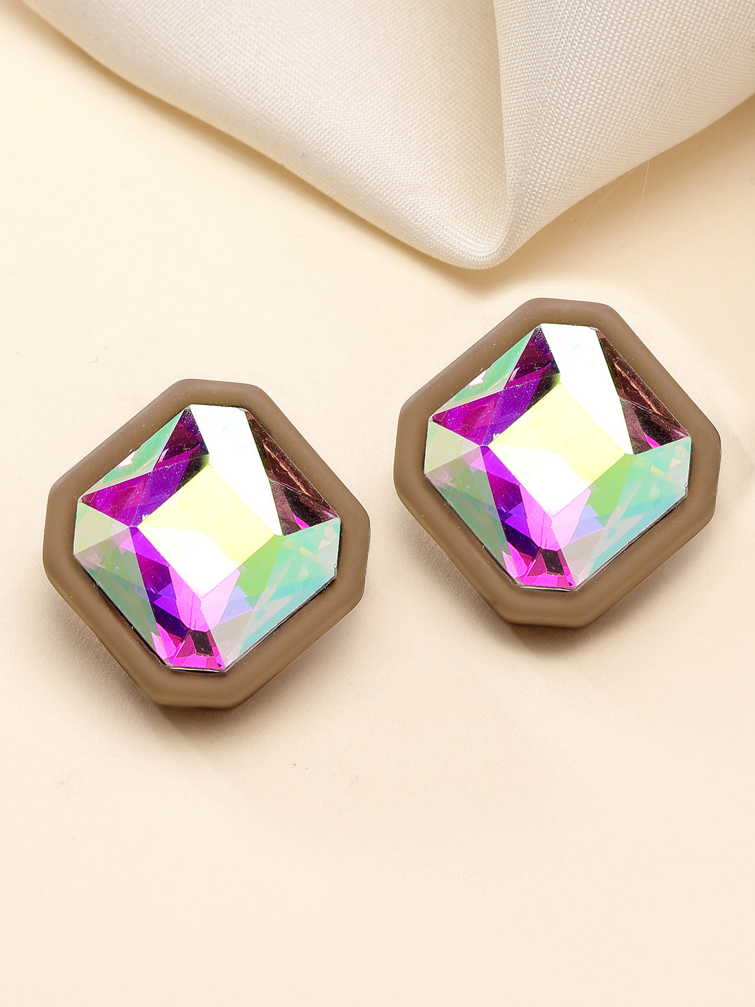 Bohey by KARATCART Brown Matte Finish Rhinestone Stud Earrings for Women