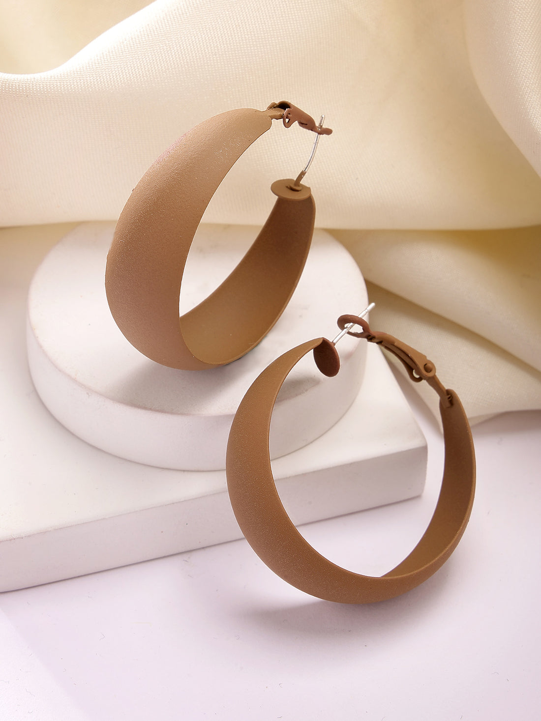 Bohey by KARATCART Matte Finish Brown Graduating Hoop Earrings