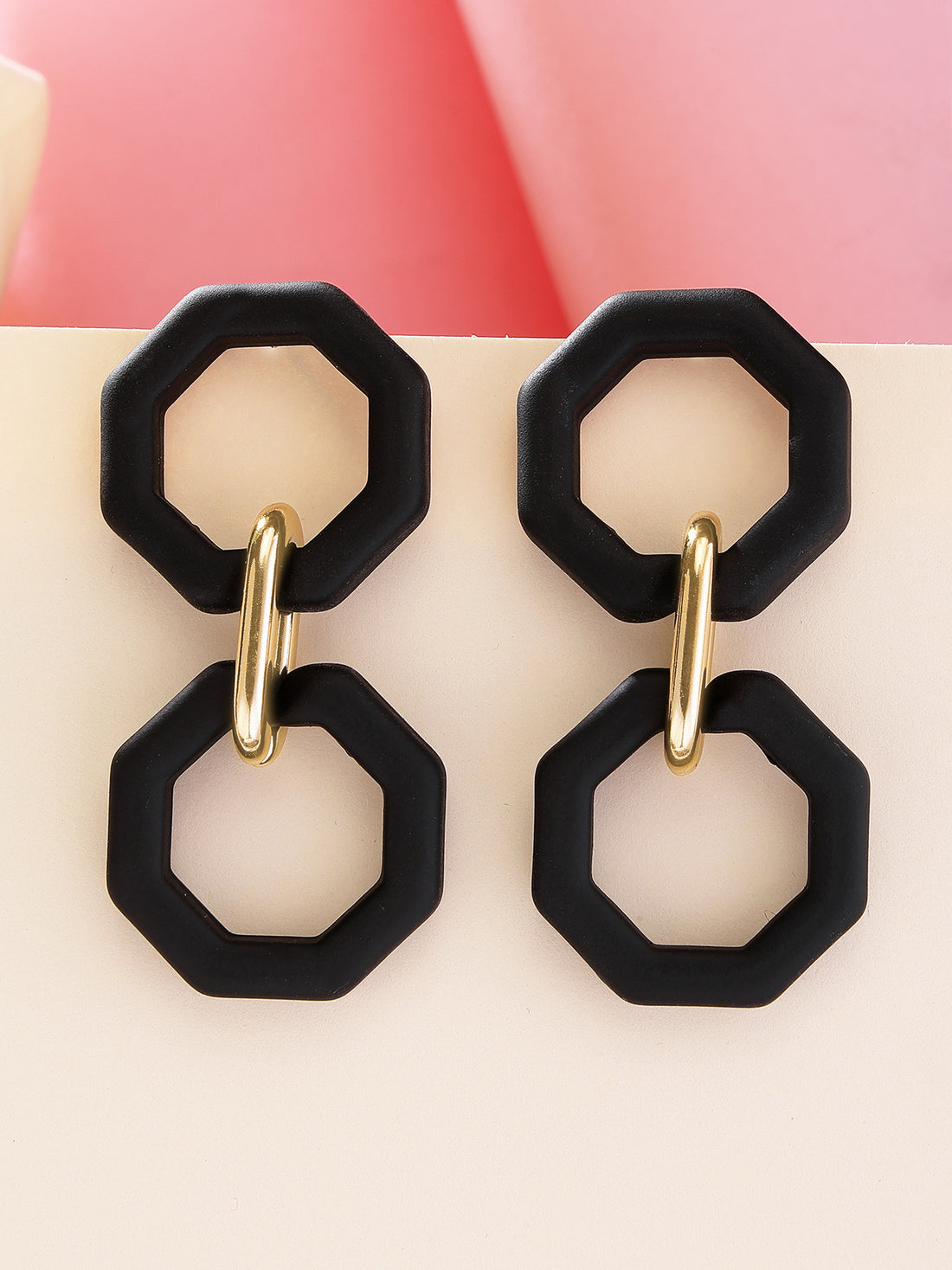 Bohey by KARATCART Black Matte Finish Link Dangler Earrings for Women