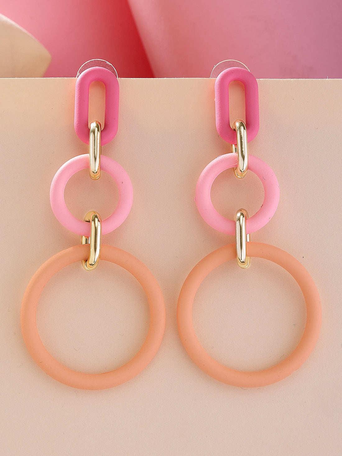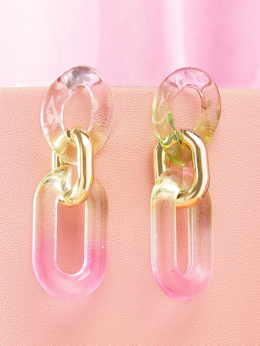 Bohey by KARATCART Baby Pink Matte Finish Link Dangler Earrings for Women