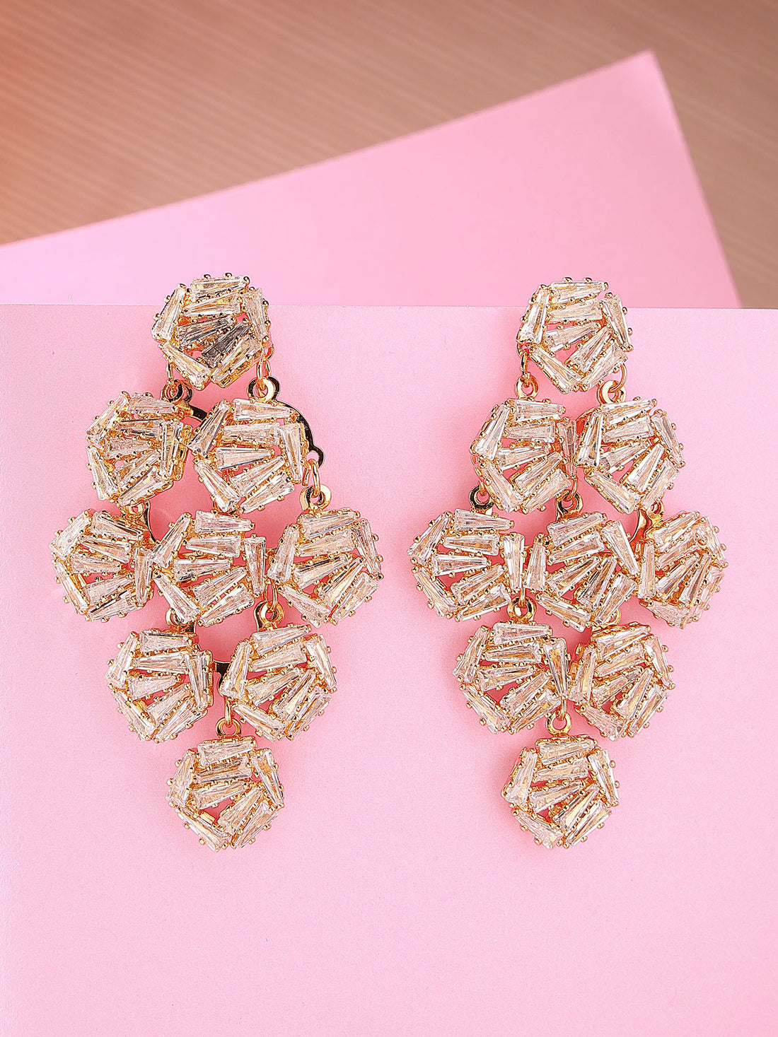 Bohey by KARATCART Gold Plated Cubic Zirconia Studded Dangler Earrings