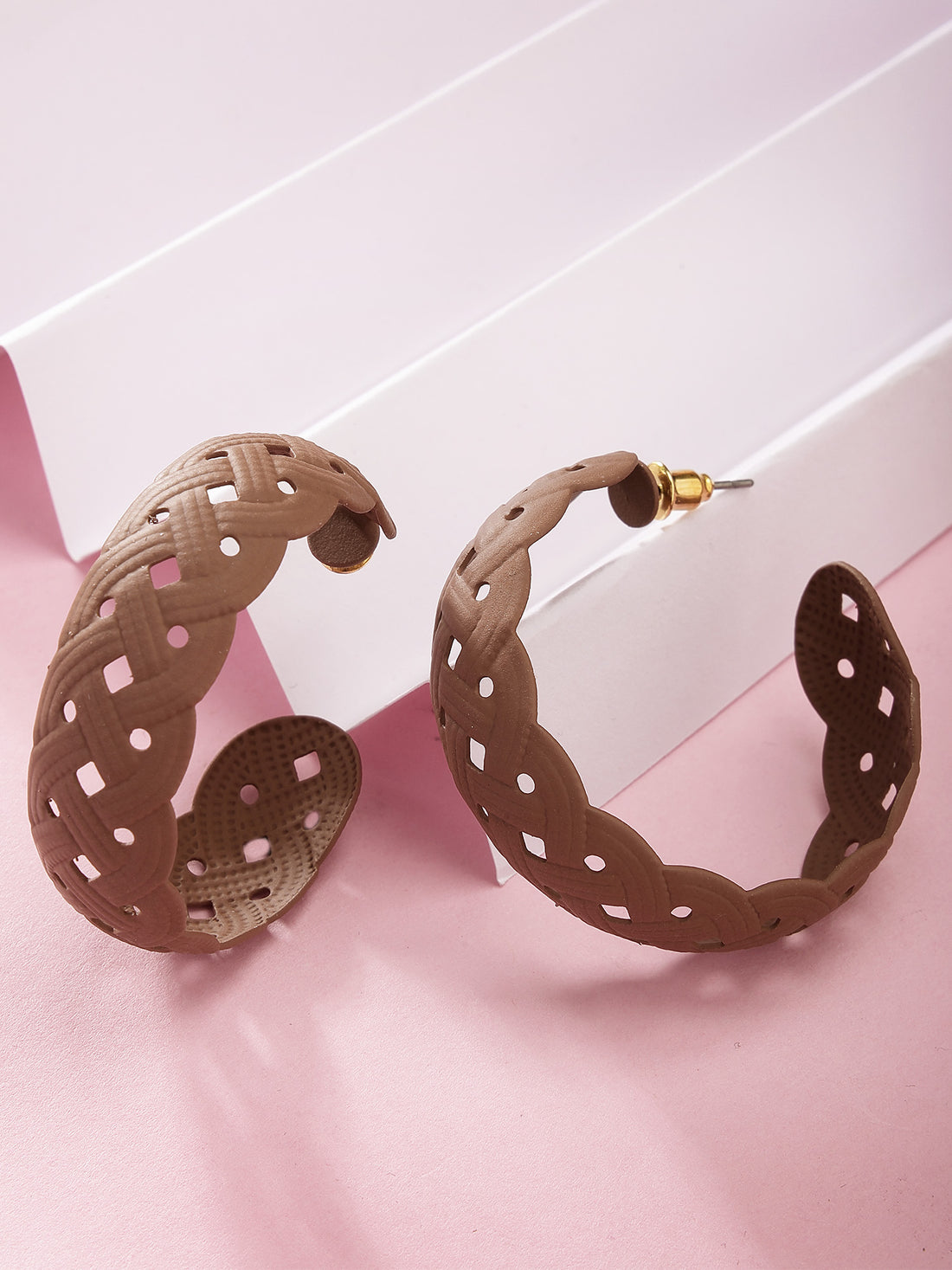 Bohey by KARATCART Matte Finish Brown Braided Pattern Hoop Earrings