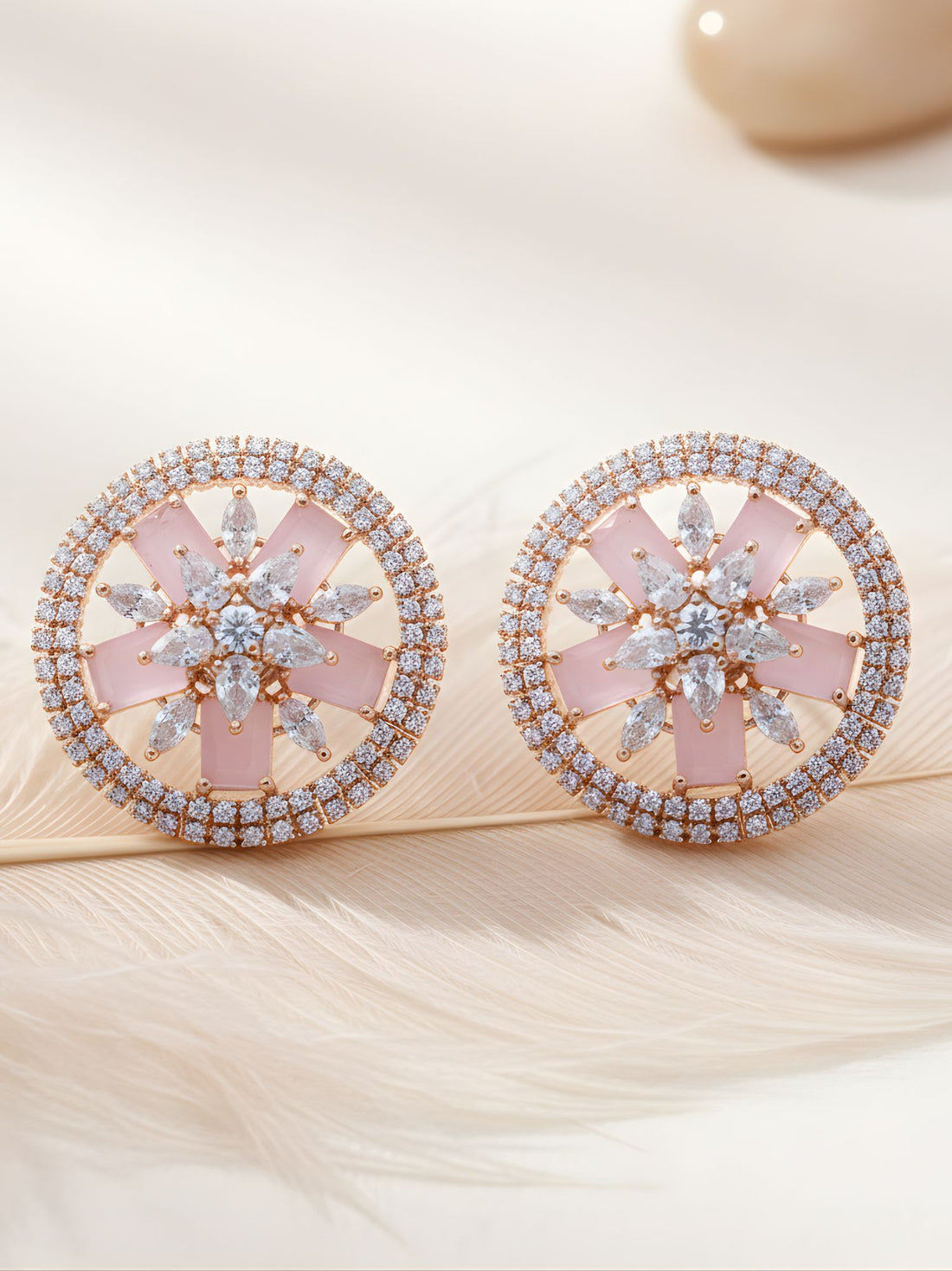 PRODUCT DETAILS Pink floral studs, rose gold-plated, has cubic zirconiaSecured with a post and backSize...