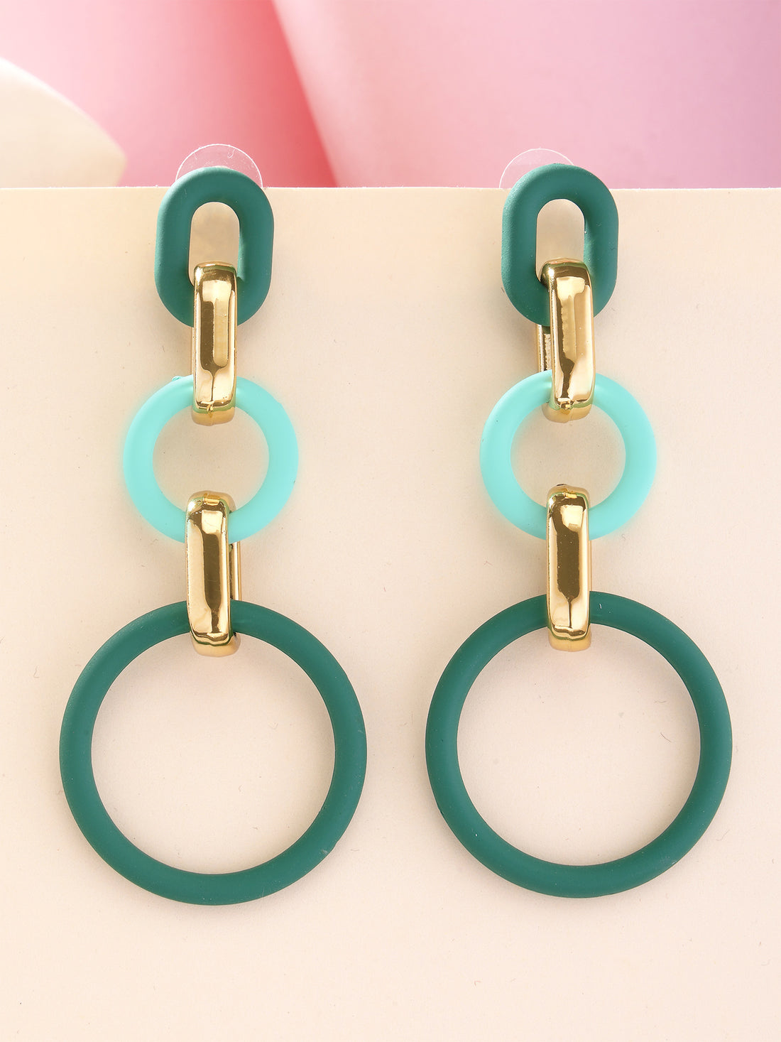 Bohey by KARATCART Green Matte Finish Link Dangler Earrings for Women
