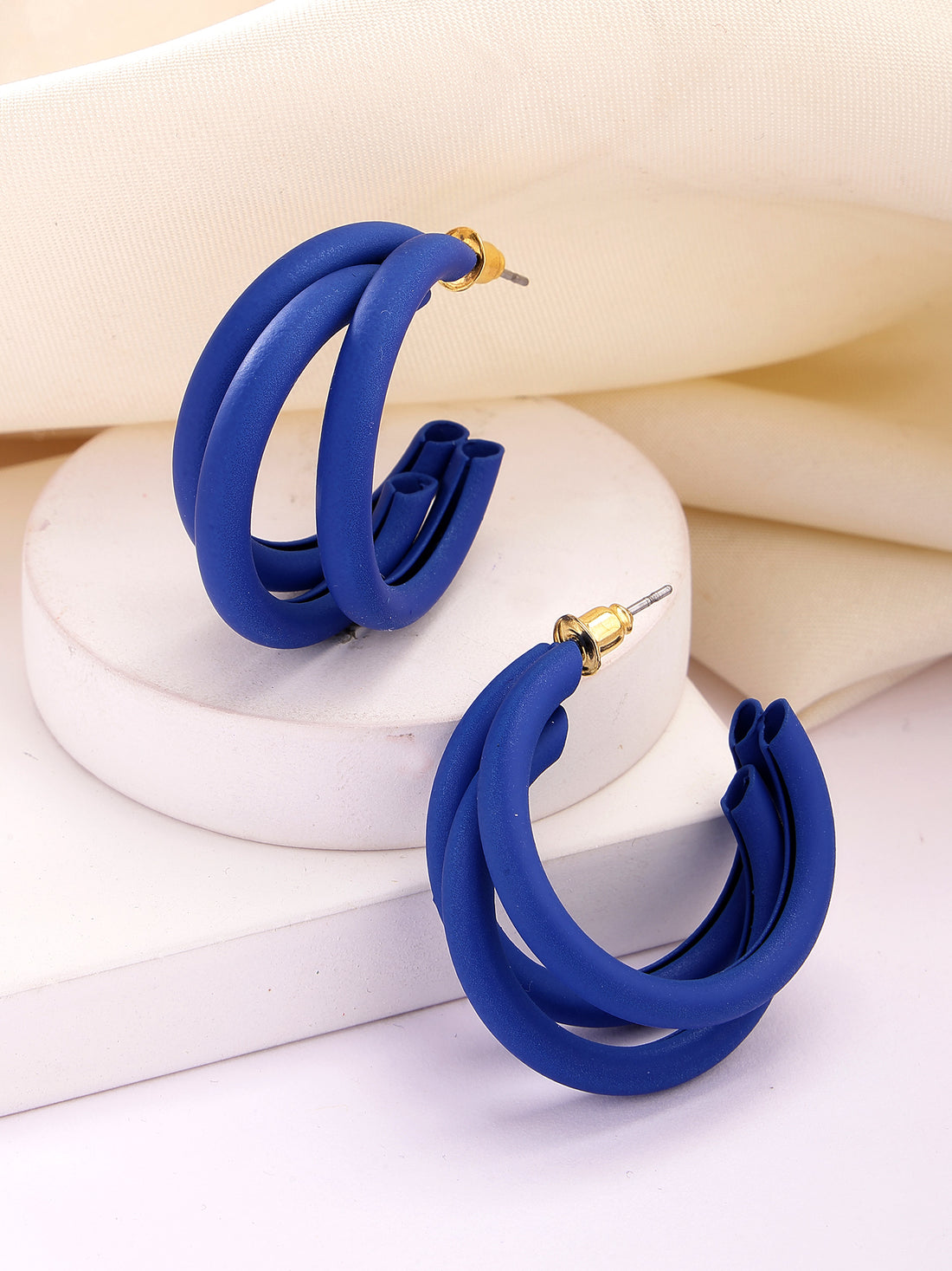 Bohey by KARATCART Matte Finish Blue Half Hoop Earrings
