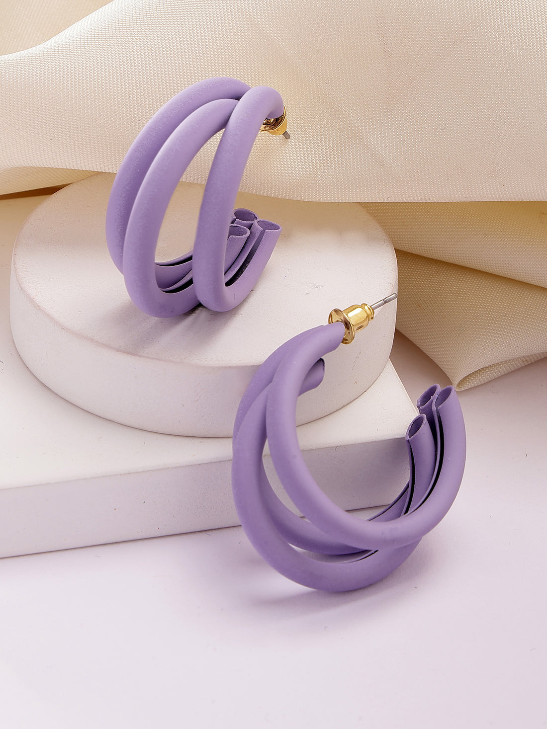 Bohey by KARATCART Matte Finish Lilac Half Hoop Earrings