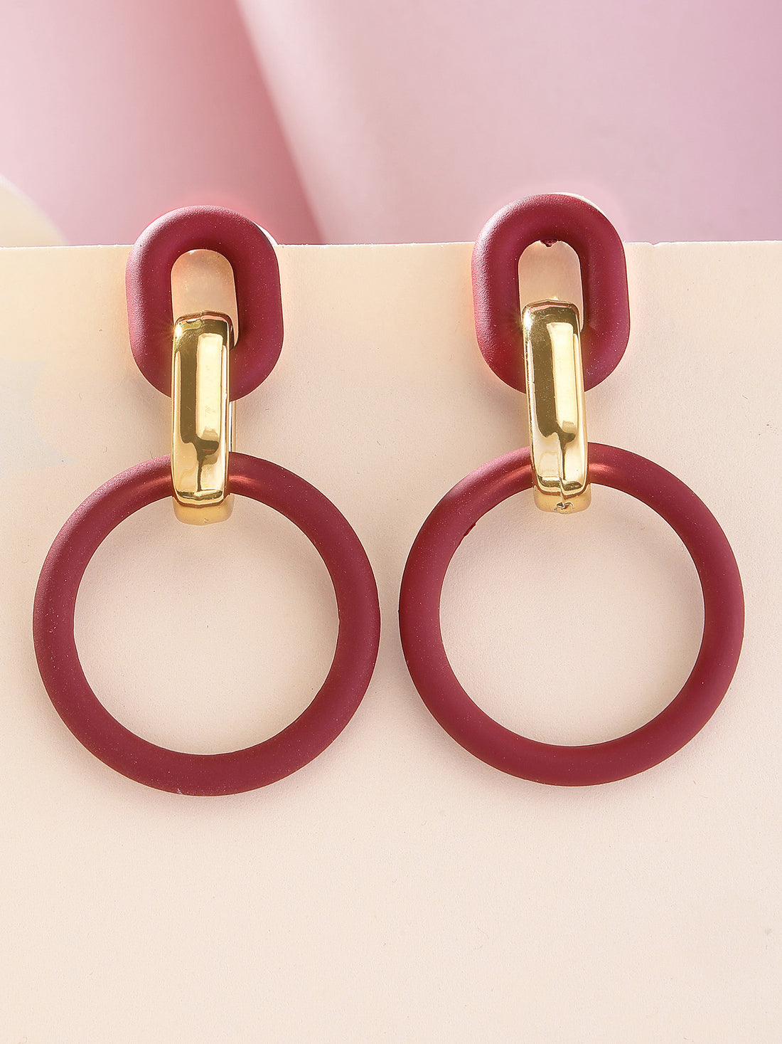 Bohey by KARATCART Maroon Matte Finish Link Dangler Earrings for Women