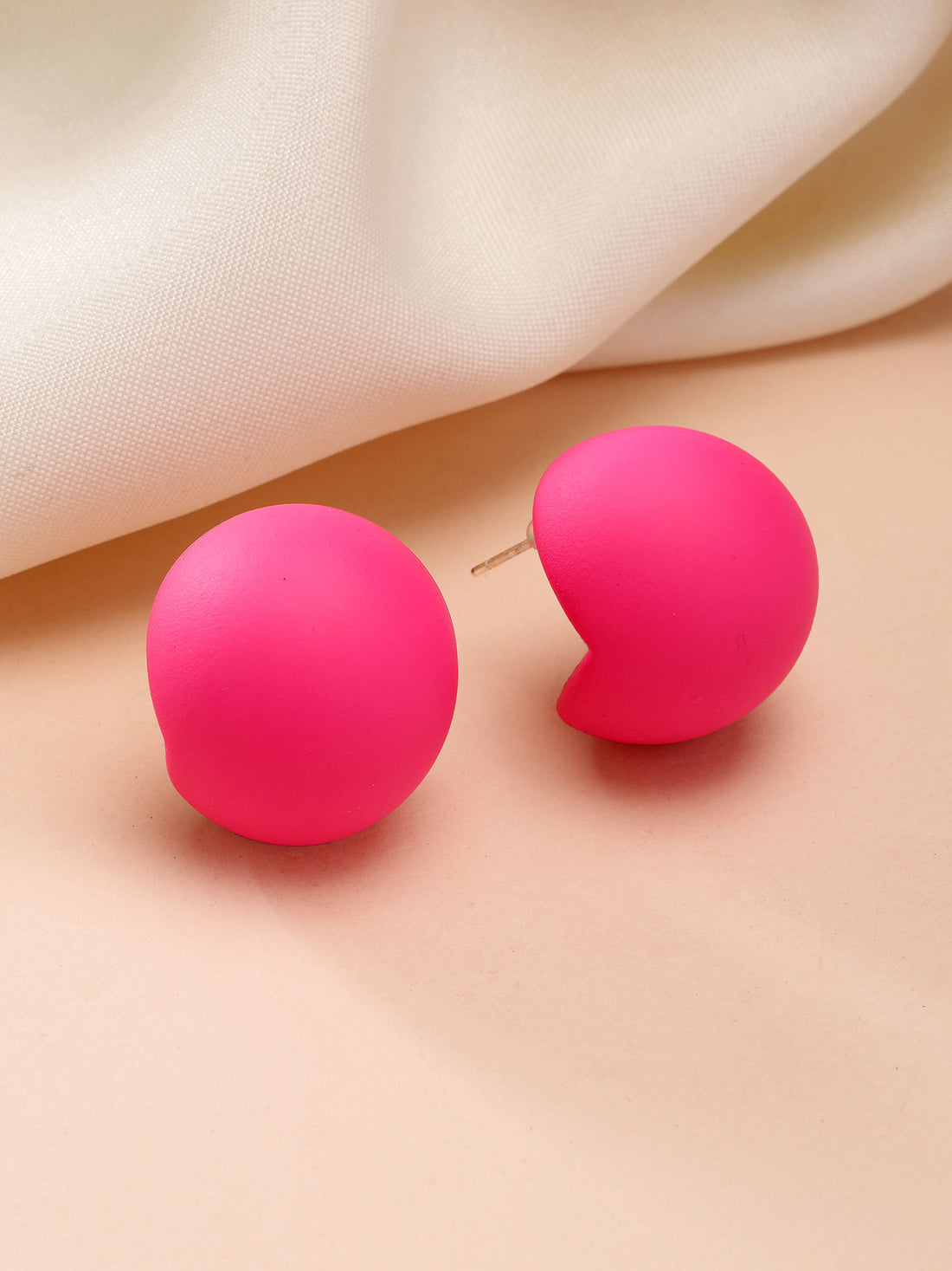 Bohey by KARATCART Matte Pink Finish Dome Stud Earrings for Women