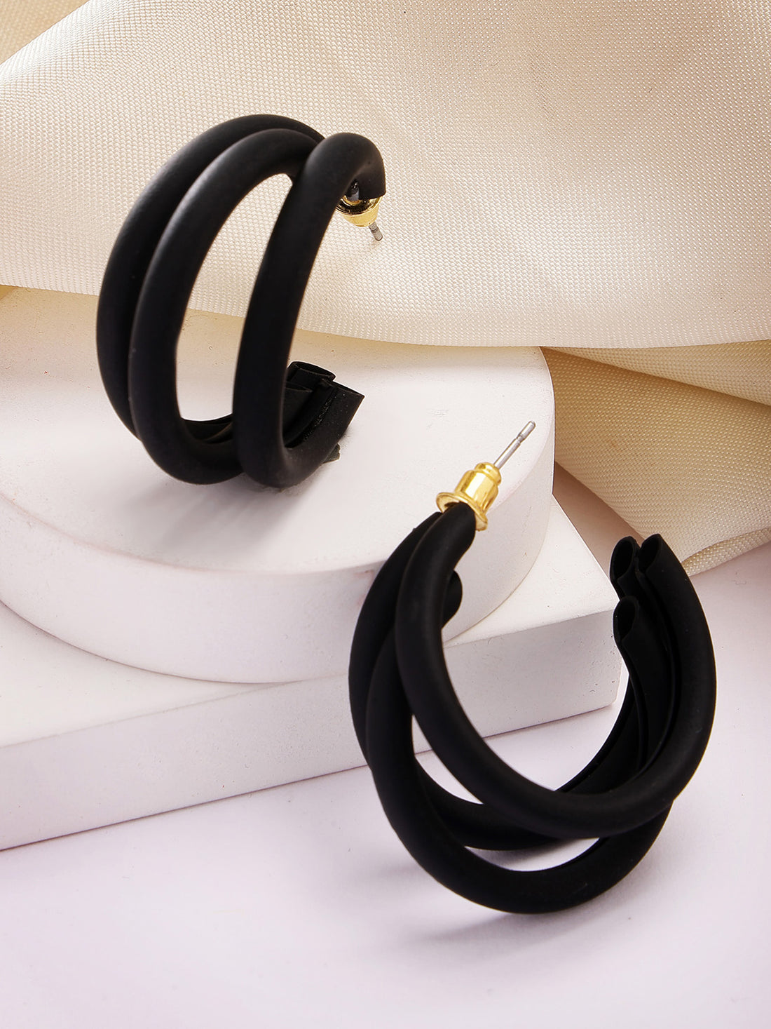 Bohey by KARATCART Matte Finish Black Half Hoop Earrings