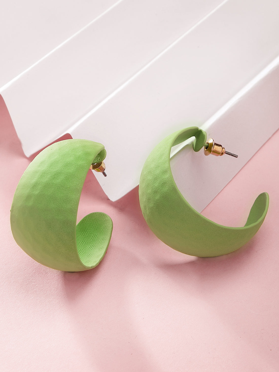 Bohey by KARATCART Matte Finish Light Green Half Hoop Earrings