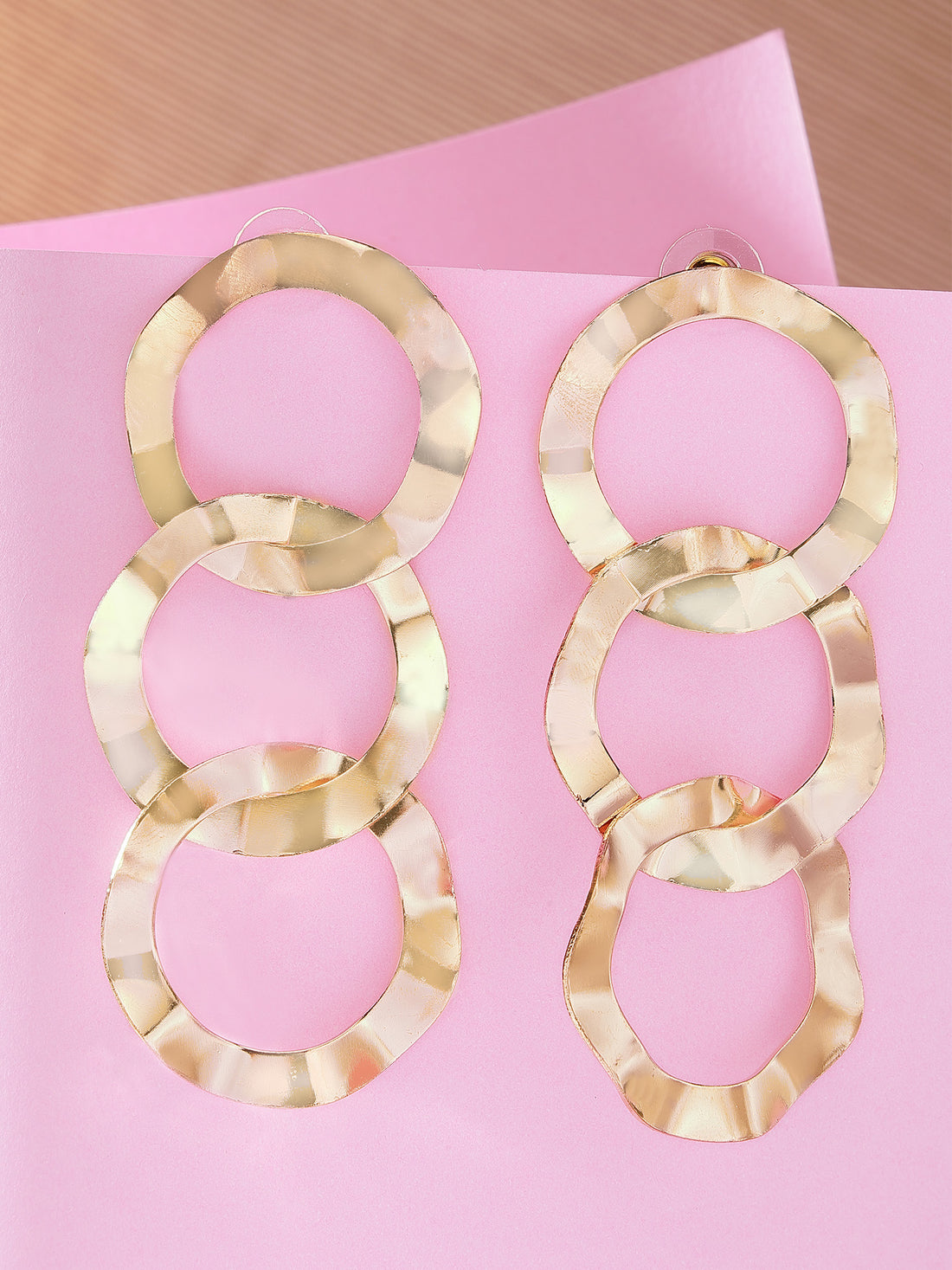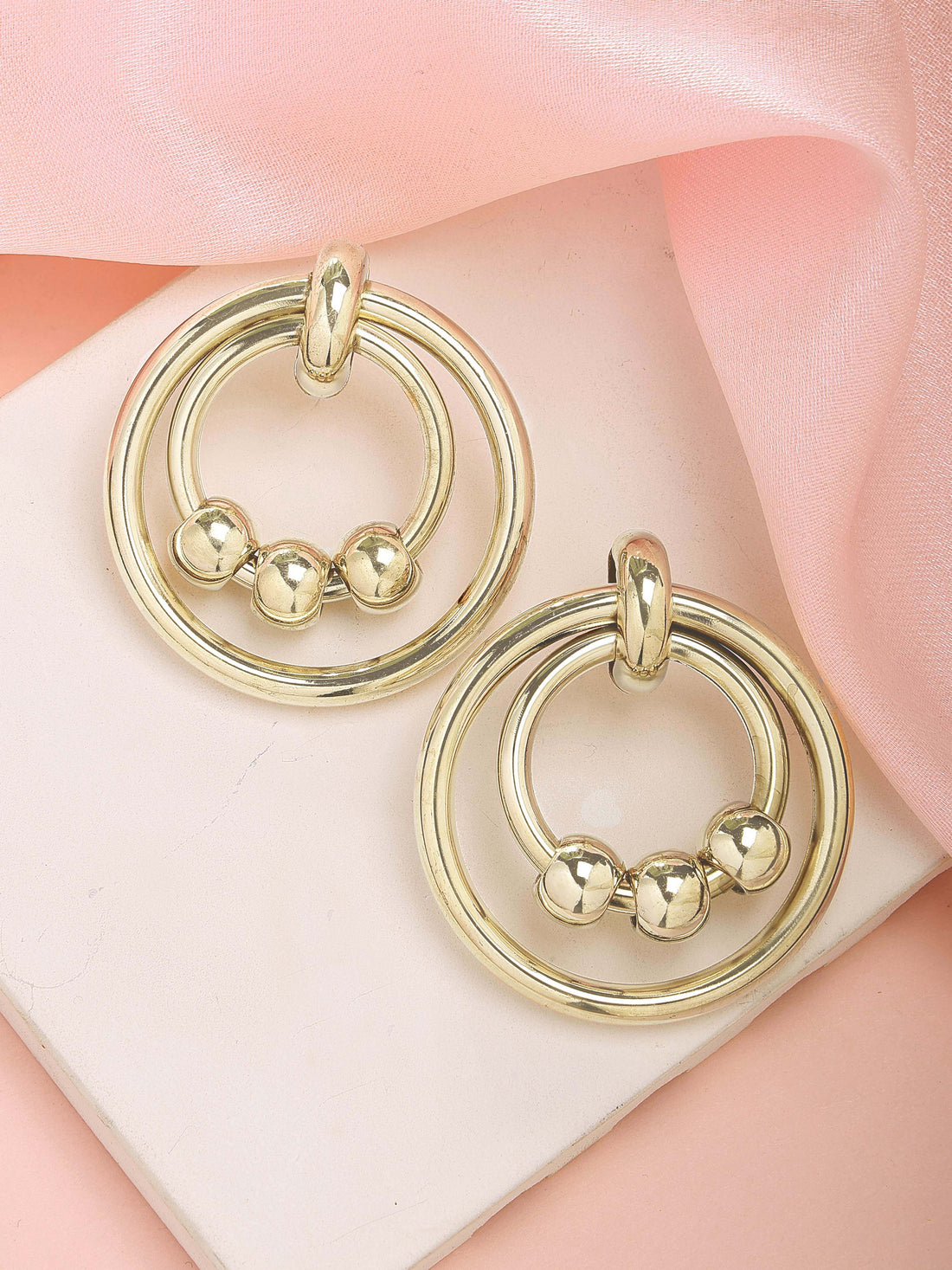 Bohey by KARATCART Gold Plated Hammered Circle Design Dangler Earrings