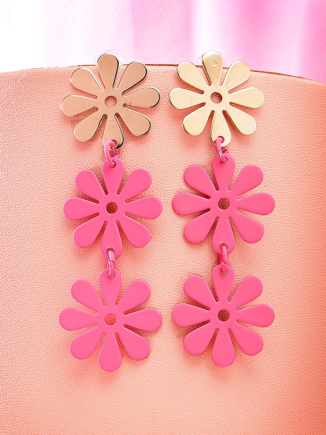 Bohey by KARATCART Pink and Gold Floral Design Drop Earrings for Women