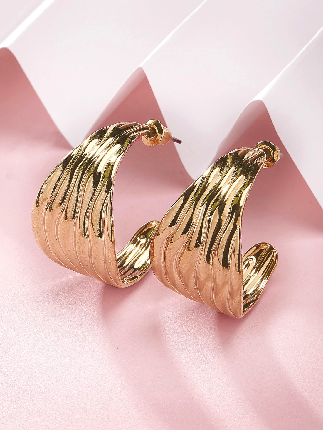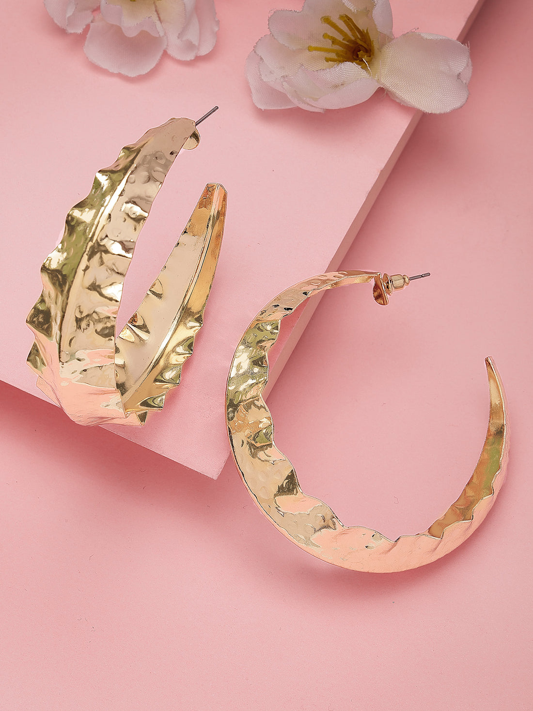 Bohey by KARATCART Gold Plated Textured Contemporary Half Hoop Earrings for Women