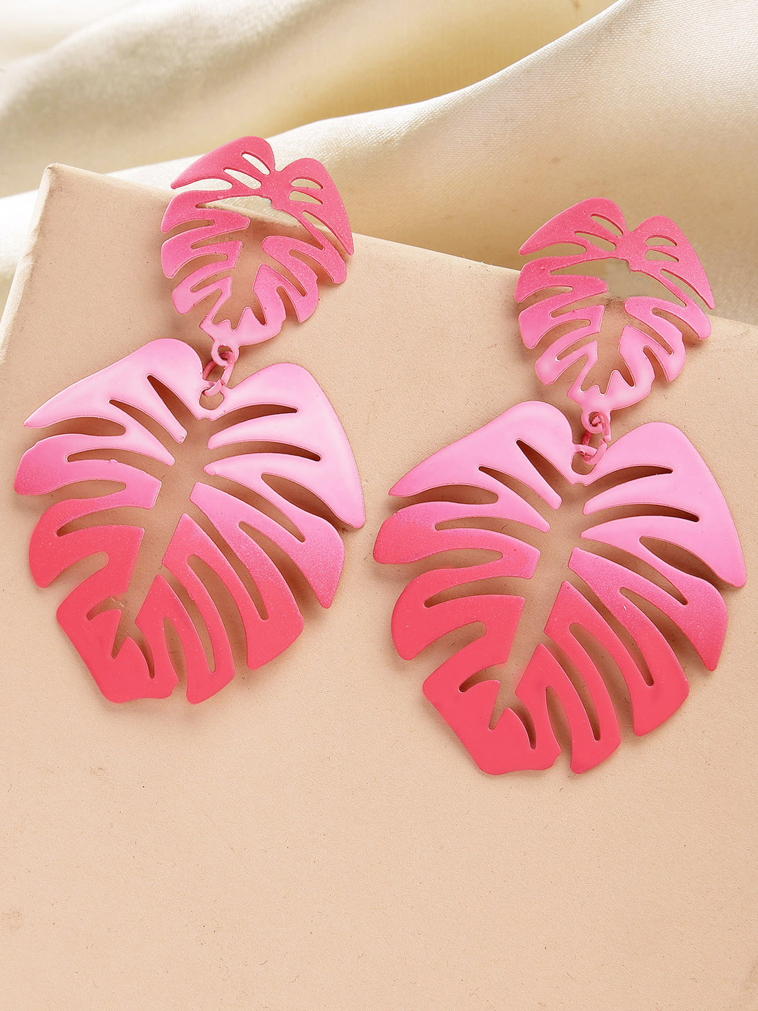 Bohey by KARATCART Pink Monstera Leaf Design Dangler Earrings for Women