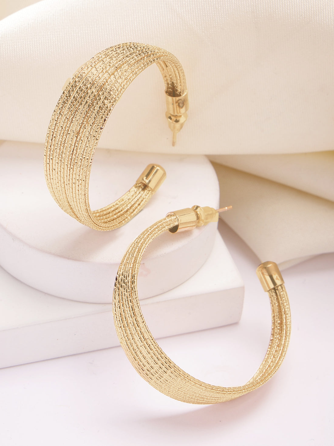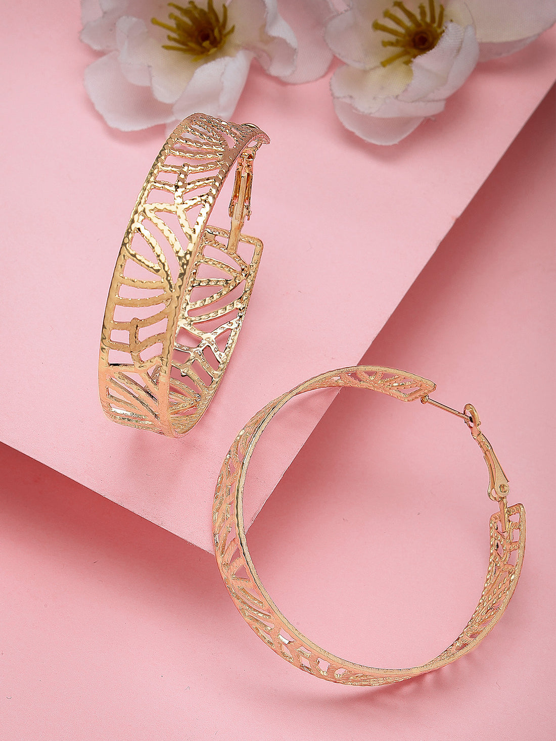 Bohey by KARATCART Gold Plated Textured Filigree Hoop Earrings for Women